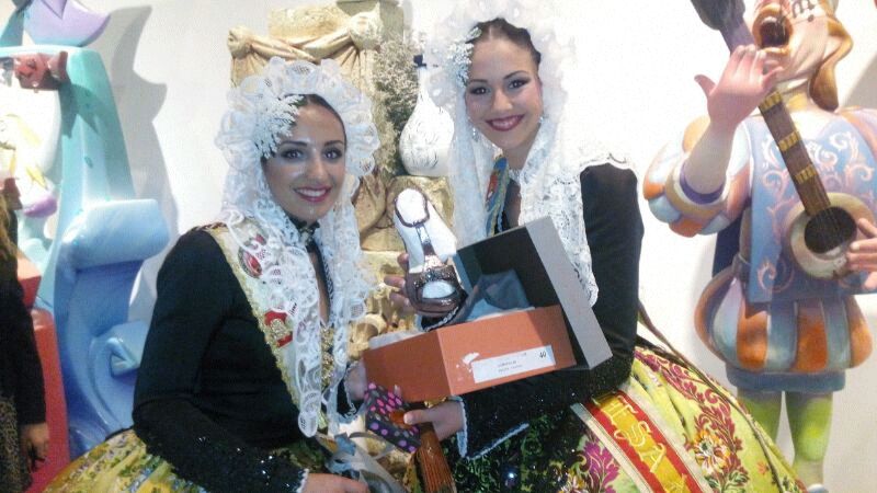 Muestra de los zapatos cedidos por la firma Rebeca Sanver como regalo para la Bellessa del Foc D´Alacant