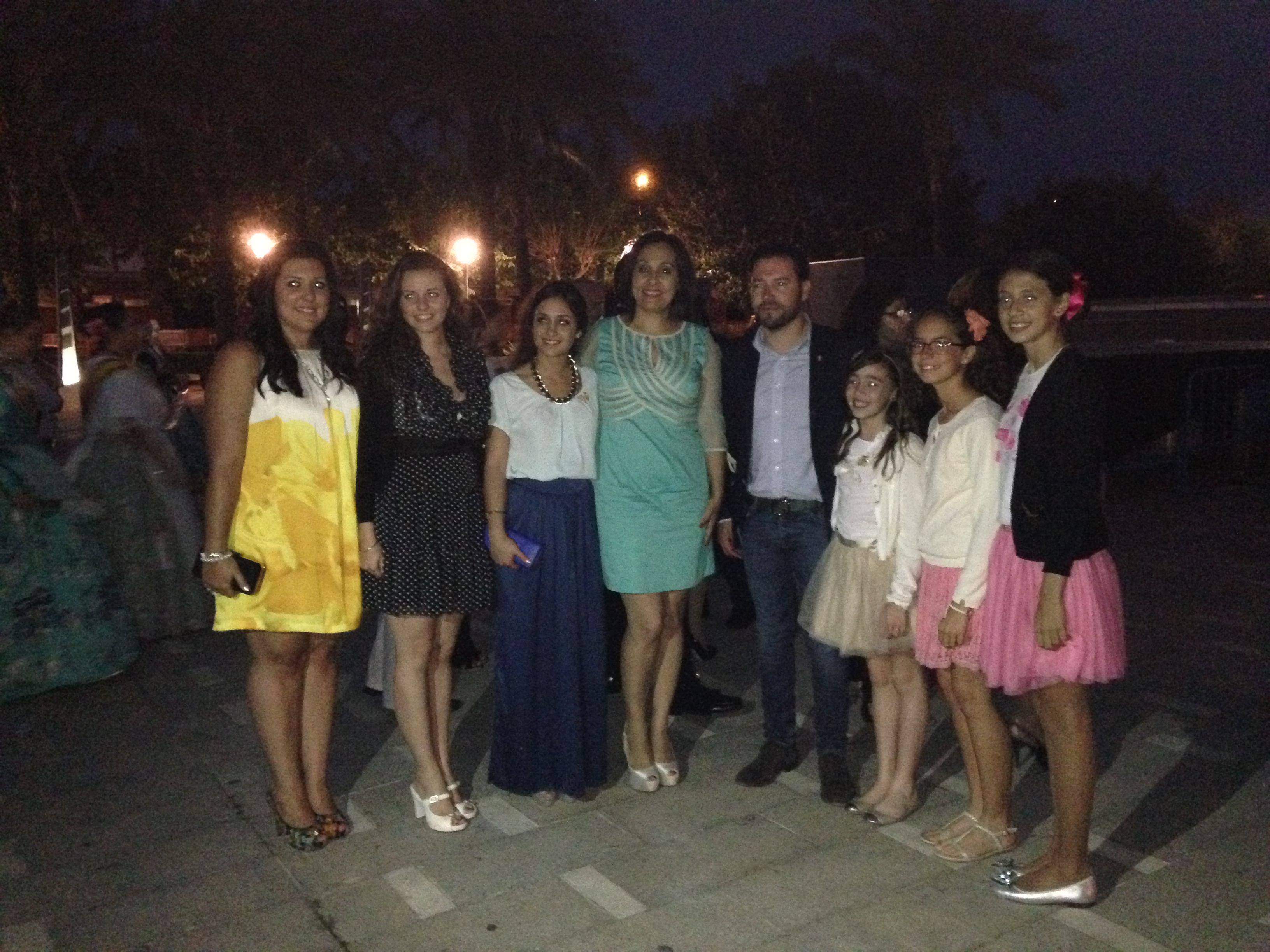 Gracias a los que desde Elda habeis querido acompañarme, a las Falleras Mayores de Elda y Damas de Honor, a los compañeros de Junta Central y a Francisco Muñoz concejal de fiestas del ayuntamiento de Elda y a su esposa Rosa por le apoyo que nos demuestra una vez más estando esta tarde con nosotros.