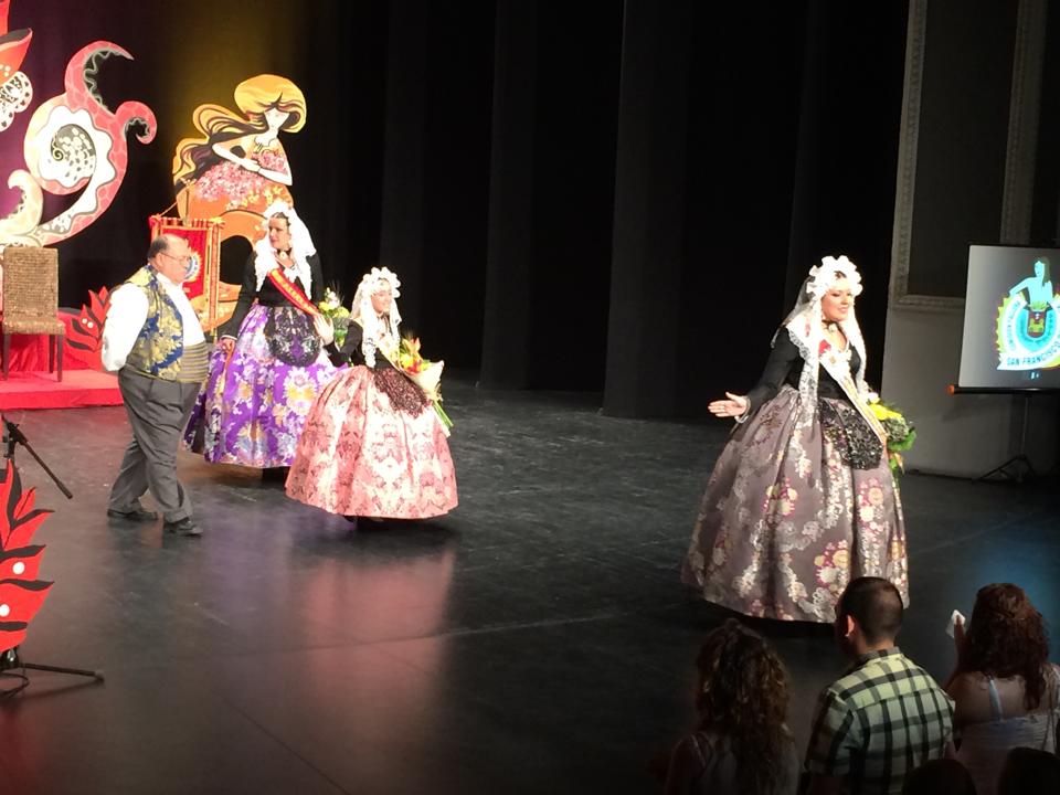 La Falla San Francisco de Sales presentó a su Fallera Mayor 2014, Marisa Riquelme Albert, acto al que acudieron Marina Pérez García, Fallera Mayor Infantil de Elda, sus Damas de honor y Ana Ruíz Gan, Dama de Honor de la Fallera Mayor de Elda.