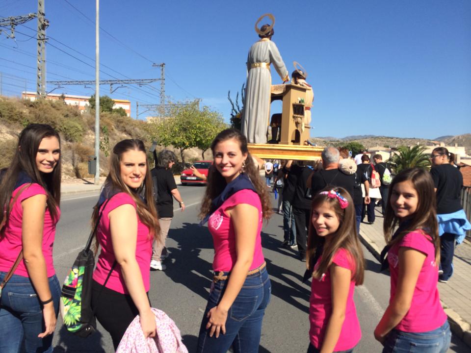 Las Falleras Mayores de Elda, sus Damas de Honor y Junta Central de Fallas, además de las comisiones falleras de la ciudad, participaron el pasado domingo en la romería de traslado de los Santos San Crispin y San Crispiniano hasta su ermita, organizada por los Veteranos de San Crispín y San Crispiniano