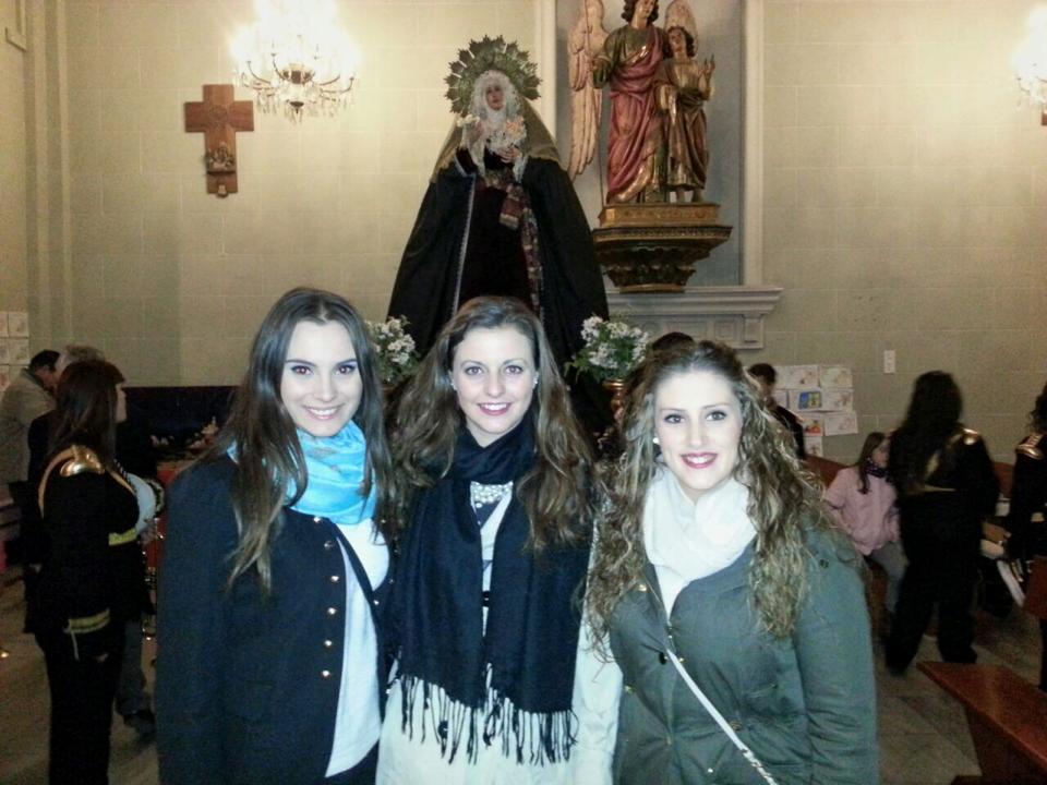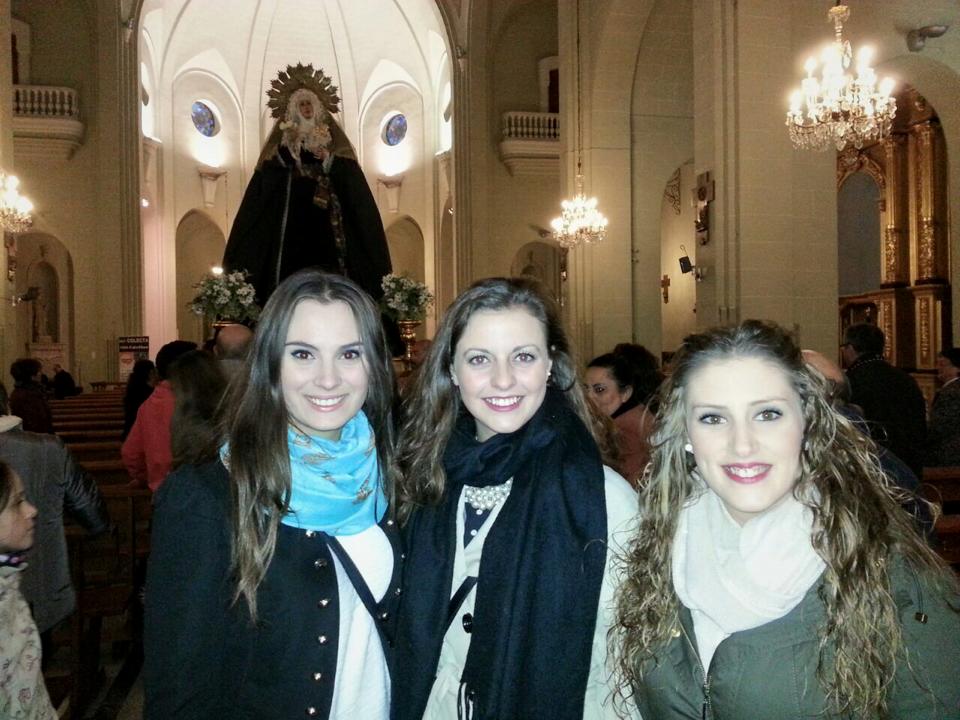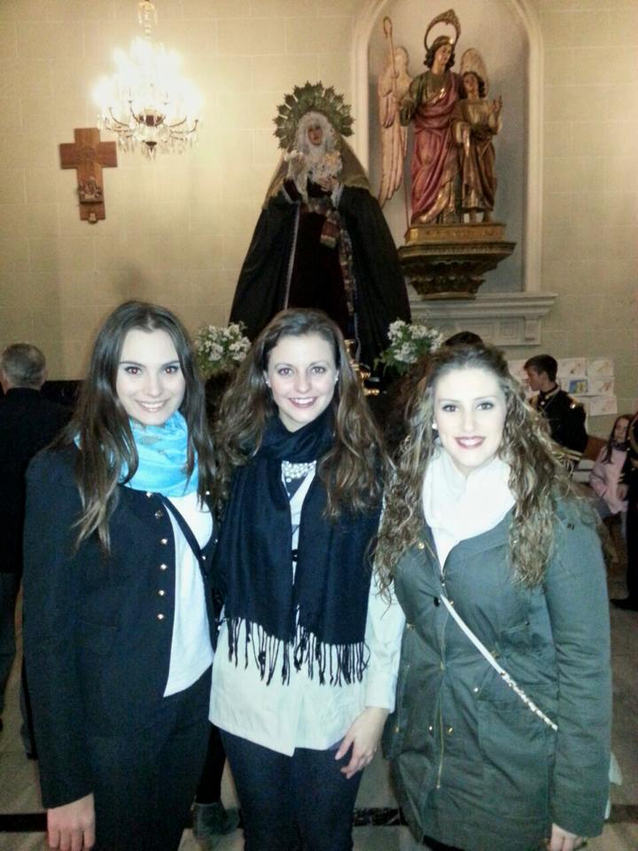 Hoy la Fallera Mayor de Elda y sus Damas de Honor han asistido a la continuación del acto de traslado de la Virgen de la Soledad desde la sede de la Semana Santa hasta la Iglesia de Santa Ana.