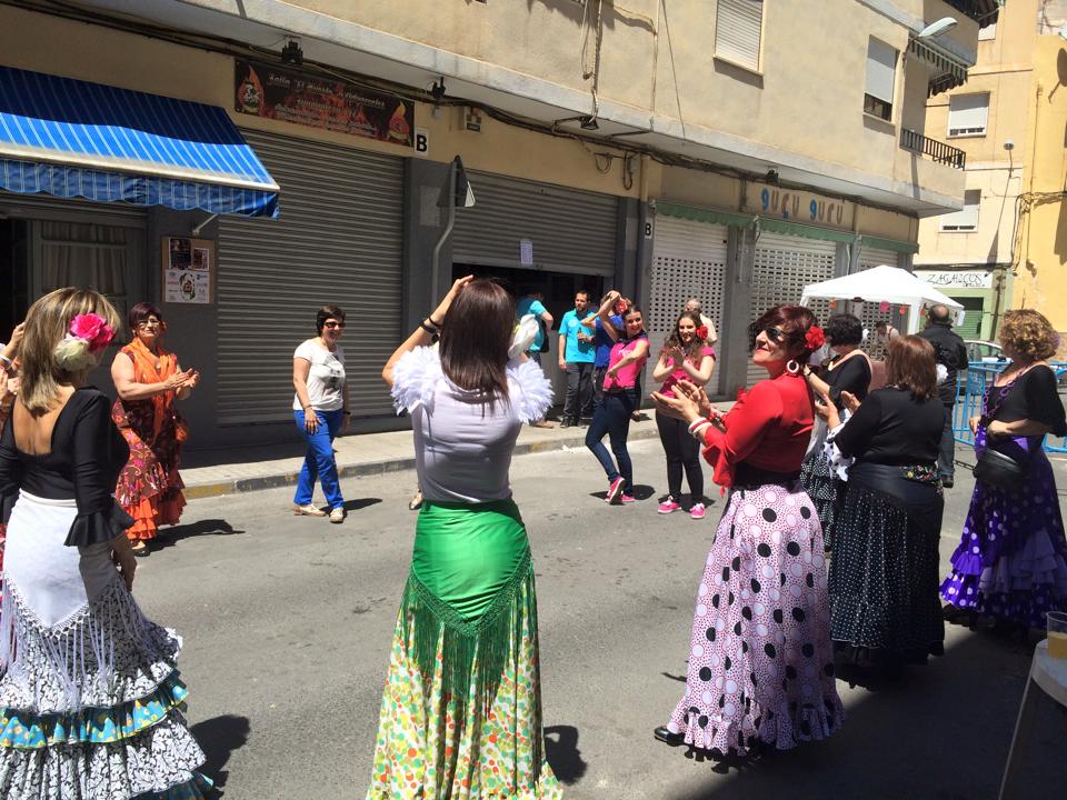 Esta mañana, las Falleras Mayores de Elda y sus Damas de Honor han asistido a la fiesta andaluza organizada por la Falla El Huerto, con motivo de su media fiesta 2015.