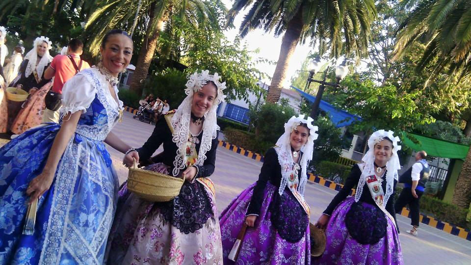 El 19/8/15 las Falleras Mayores de Elda y sus Damas de Honor asistieron a los actos organizados por la Federación de Peñas de Jumilla con motivo de los días grandes de la fiesta de la Vendimia.