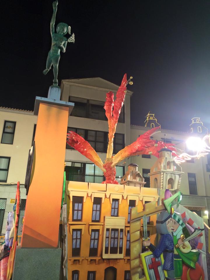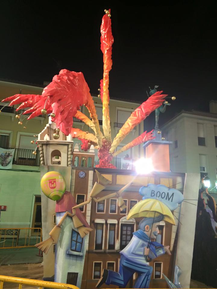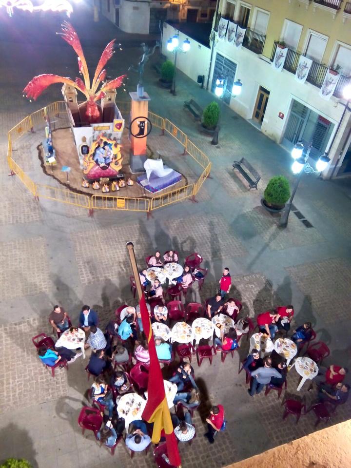 Jueves de Plantá: comenzamos cenando en la Plaza de la Constitución junto a la Falla Oficial y el equipo de gobierno del Ayto. De Elda, tras lo cual visitamos las fallas para ver el desarrollo de sus plantás.