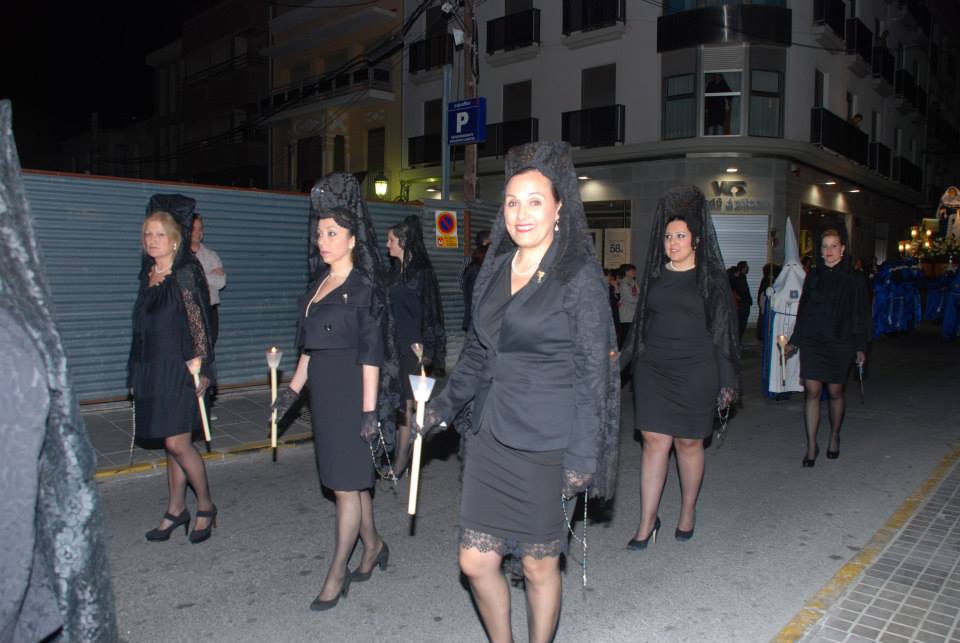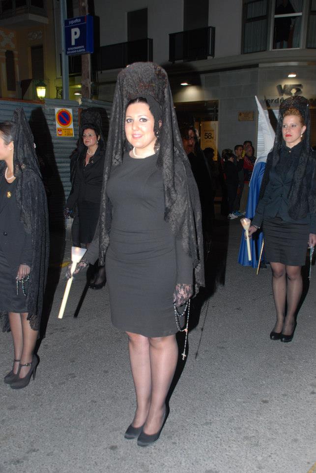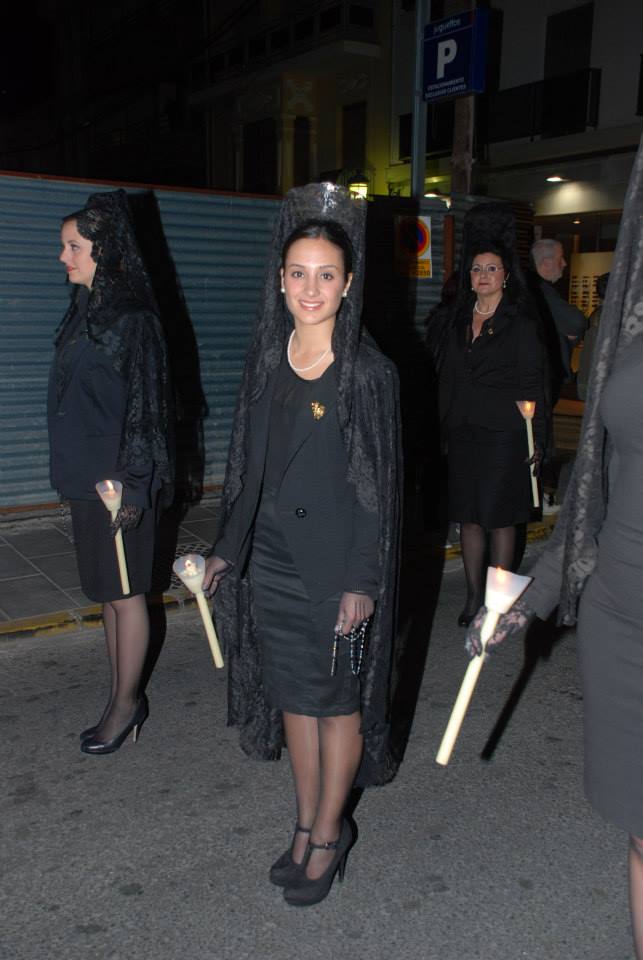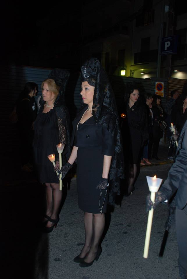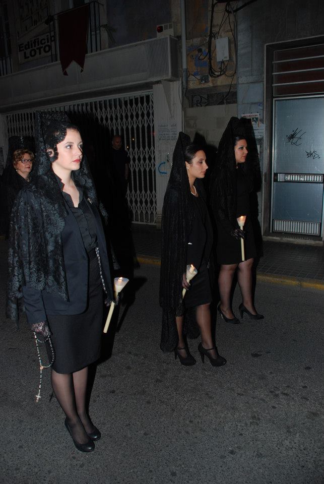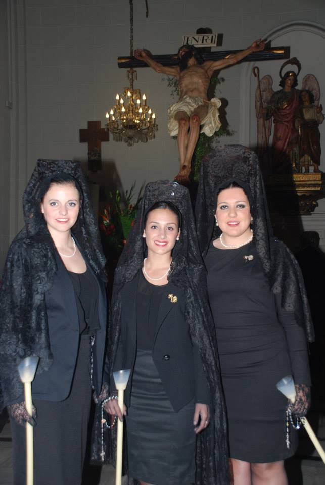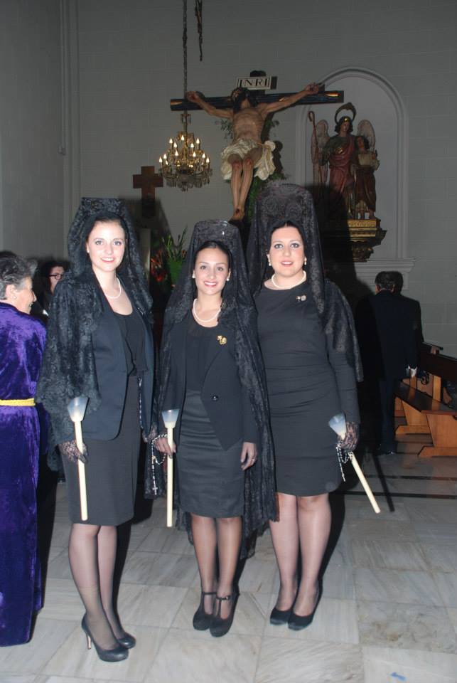 Lorena, Fallera Mayor de Elda y Ana y Anabel, sus Damas de Honor, han participado con mantilla en la Procesión del Encuentro, invitadas por la Cofradía de la Santa Mujer Verónica y en la Procesión del Silencio, invitadas por la Cofradía Nuestra Señora de la Soledad, acompañadas por la Presidenta, Vicepresidenta y Delegada de Vestuario de la Junta Central de Fallas de Elda.
