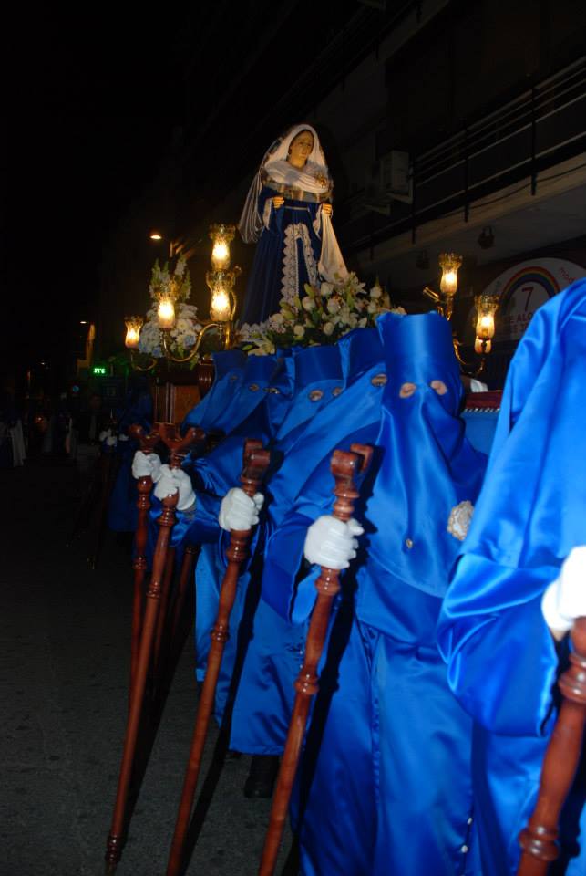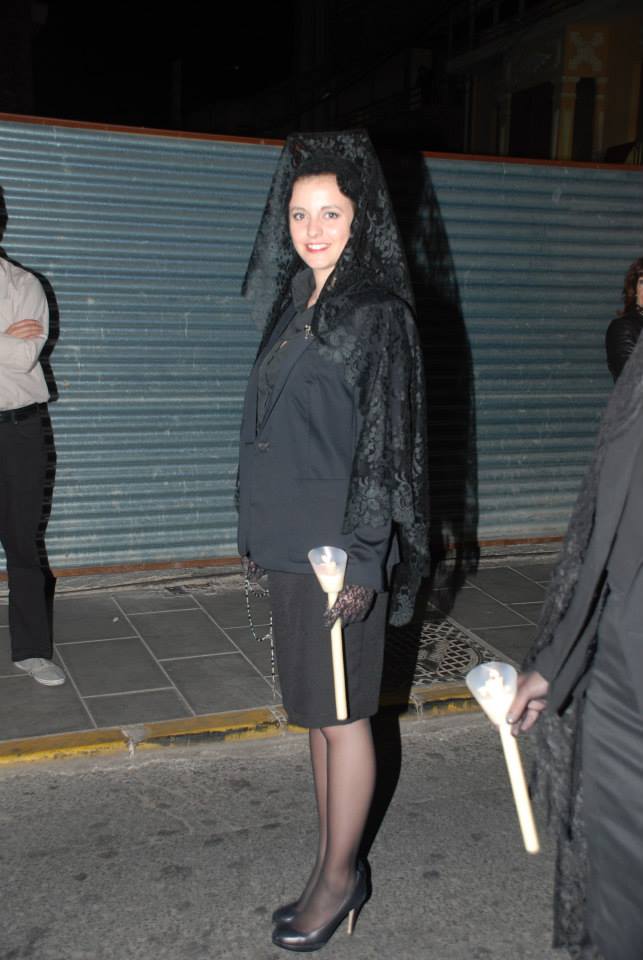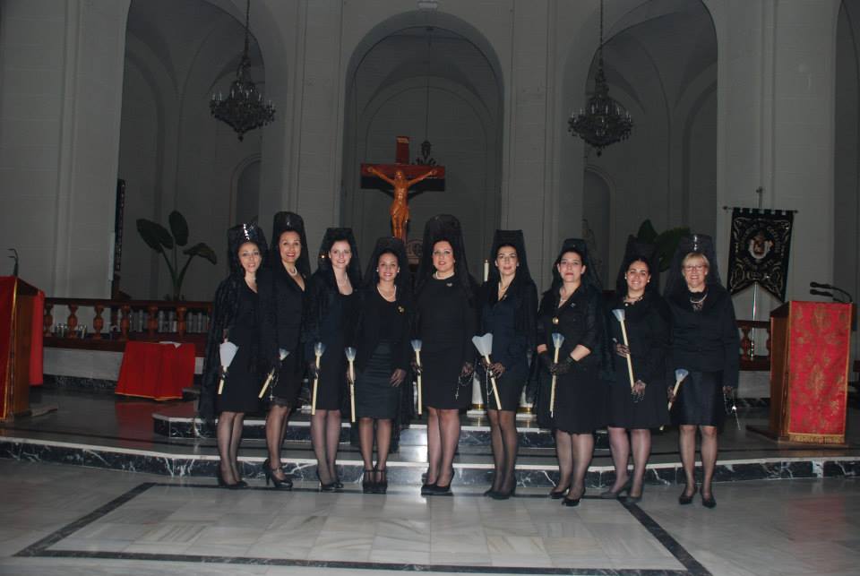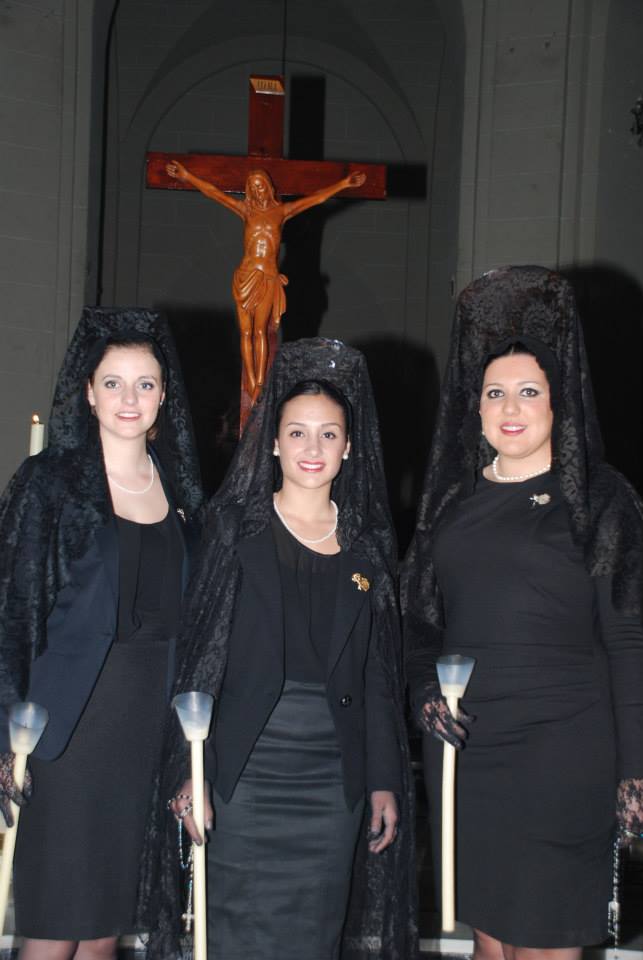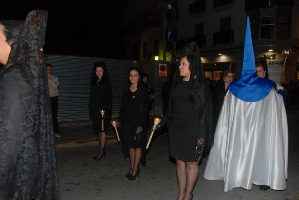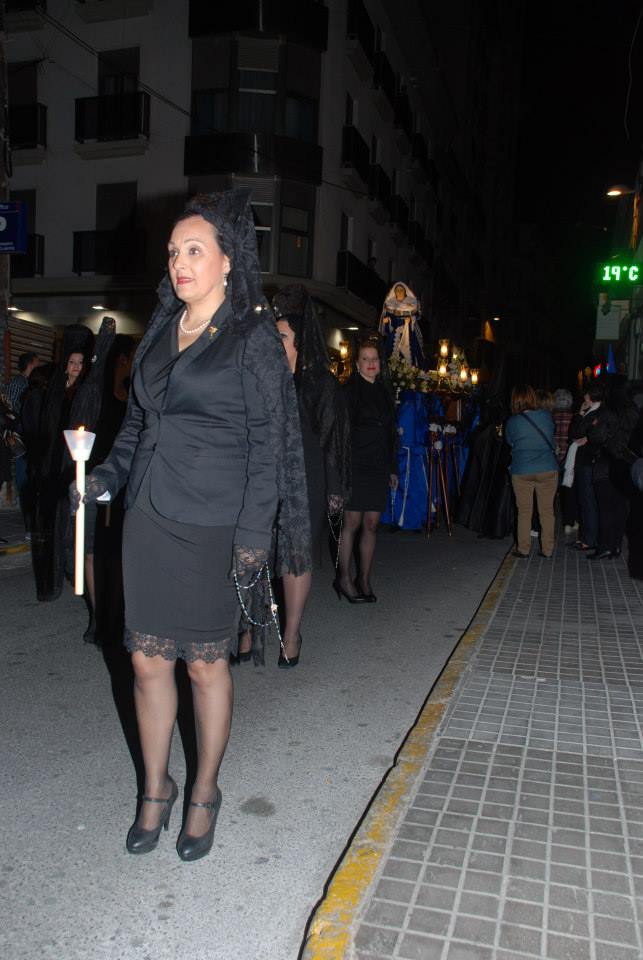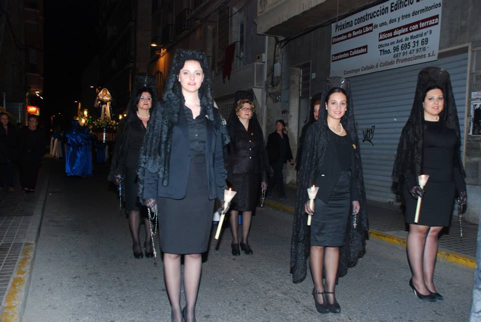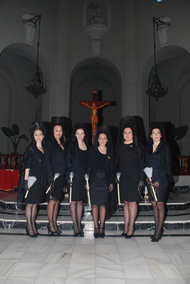Lorena, Fallera Mayor de Elda y Ana y Anabel, sus Damas de Honor, han participado con mantilla en la Procesión del Encuentro, invitadas por la Cofradía de la Santa Mujer Verónica y en la Procesión del Silencio, invitadas por la Cofradía Nuestra Señora de la Soledad, acompañadas por la Presidenta, Vicepresidenta y Delegada de Vestuario de la Junta Central de Fallas de Elda.