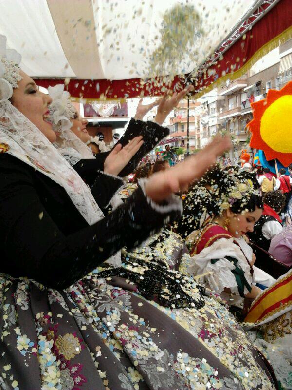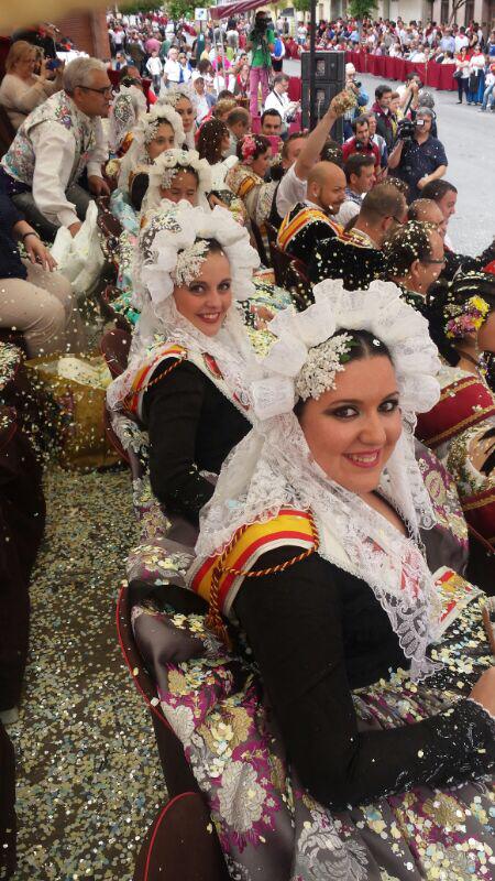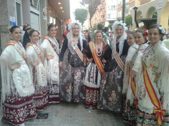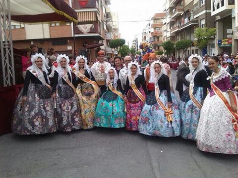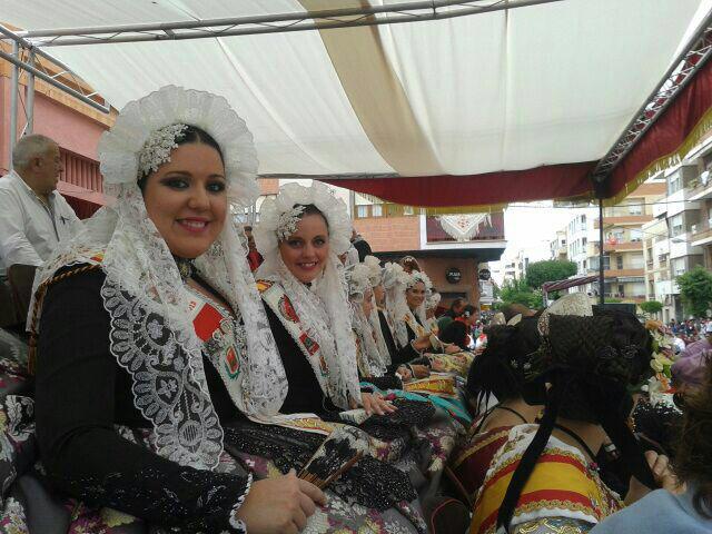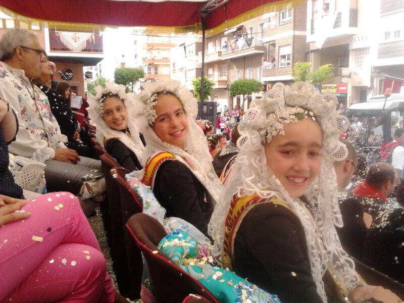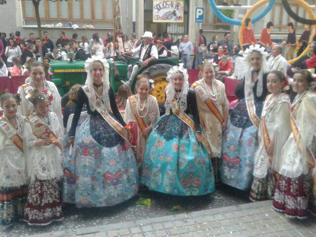 En la tarde de ayer Marina Pérez García, Fallera Mayor Infantil de Elda, Rocío Martínez y Carmen Cebrián, sus Damas de Honor y Anabel Rico y Ana Ruíz, Damas de Honor de la Fallera Mayor de Elda, asistieron a la Cabalgata y concurso de carrozas de Yecla, con motivo de sus Fiestas de San Isidro.