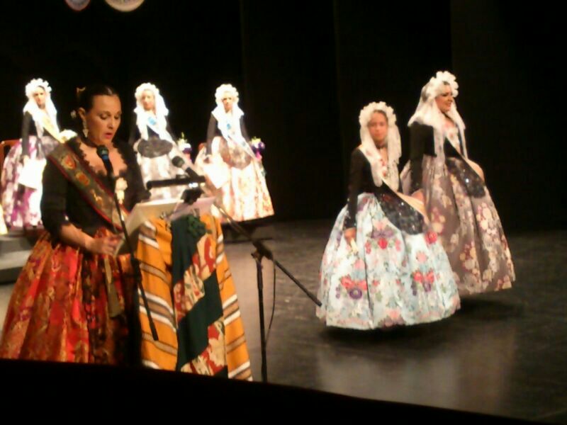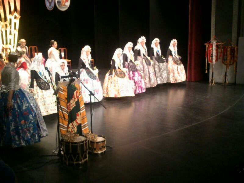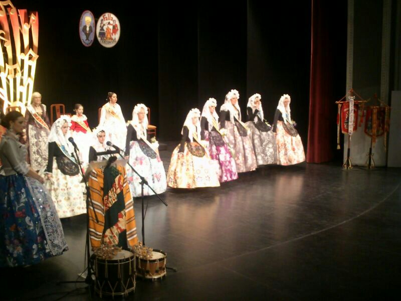 En la tarde de ayer la Falla Fraternidad presentó a sus Cargos Falleros para el presente ejercicio en el Teatro Castelar de nuestra ciudad. Rebeca Picó Cantos y Miriam Lledó Pérez fueron proclamadas como Fallera Mayor Infantil y Fallera Mayor respectivamente junto a sus Damas de Honor Elia Bernabeu Milán, Laura Picó Cantos, Paula Micó Segura y Julia María Vera Serna. Los Cargos Oficiales de la Fiesta en este caso representados por las Damas de Honor de las Falleras Mayores de Elda, Rocío Martínez Herrera y Ana Ruiz Gan, acudieron invitadas a la misma acompañadas por la Presidenta de Junta Central de Fallas de Elda. El acto tuvo un momento especialmente emotivo y emocionante, cuando esta comisión recordó y homenajeó a Juan José López, fallecido hace unas semanas y querido por todos los festeros y personas que lo conocimos. Su marcha condicionó a que la comisión cambiara la temática de la presentación, pero ésto no fue motivo para que nos hicieran disfrutar de una presentación digna y elegante.