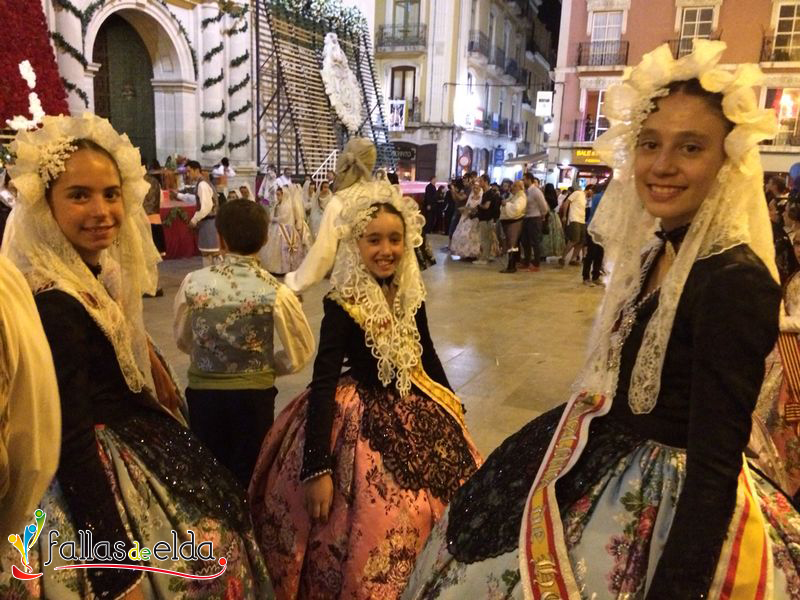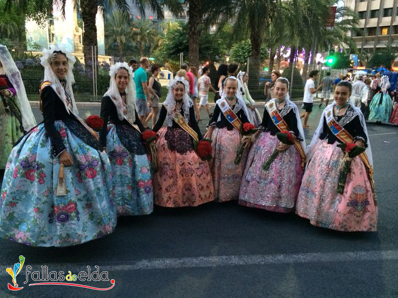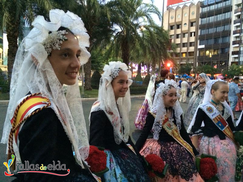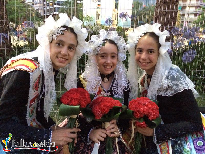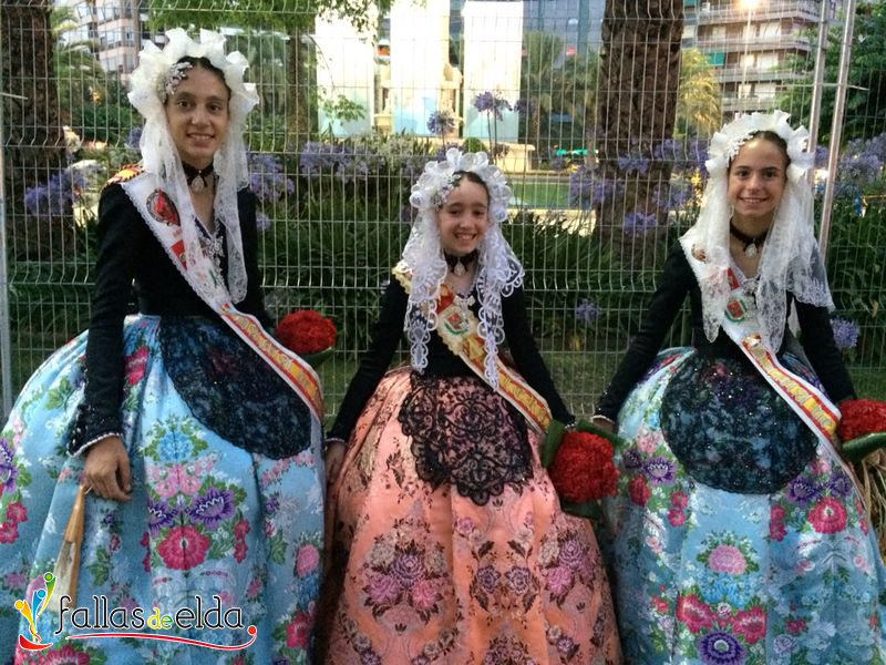 En la tarde de ayer, nuestros Cargos Oficiales Infantiles fueron invitadas por la Federación de Hogueras y Barracas de Alicante a desfilar en la Ofrenda de Flores a la Virgen del Remedio con motivo de la celebración de sus fiestas de Hogueras 2014. La Fallera Mayor Infantil de Elda, Marina Pérez García y sus Damas de Honor, Carmen Cebrián Tortosa y Rocío Martínez Herrera acudieron acompañadas por Junta Central de Fallas de Elda.