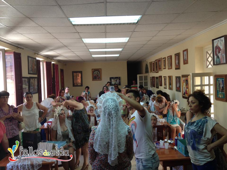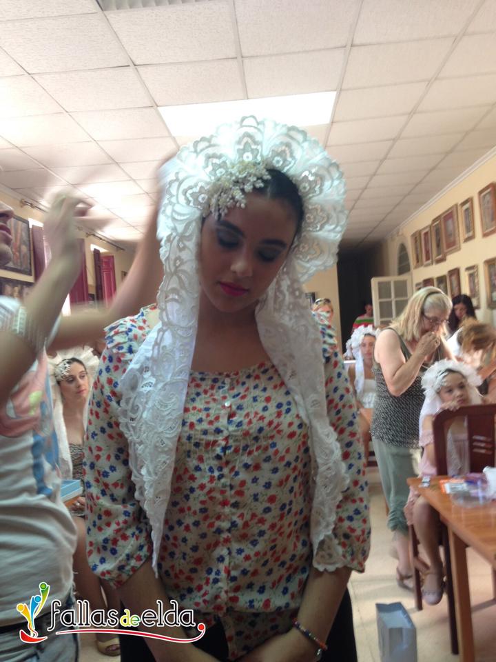 El pasado sábado 28 de Junio tuvo lugar en la sede de Junta Central de Fallas la última jornada de formación para las Candidatas a Falleras Mayores de Elda 2014. En este caso consistió en una explicación y clase de colocación de mantilla del traje de Novia Alicantina impartida por el Delegado del Área Artística y Asesor de Imagen Iván Sánchez Salguero.
