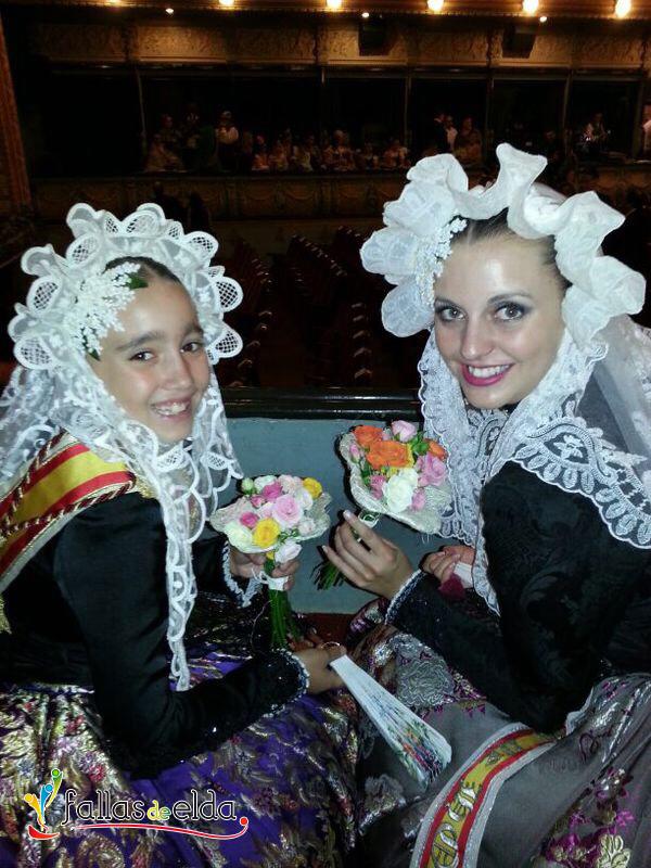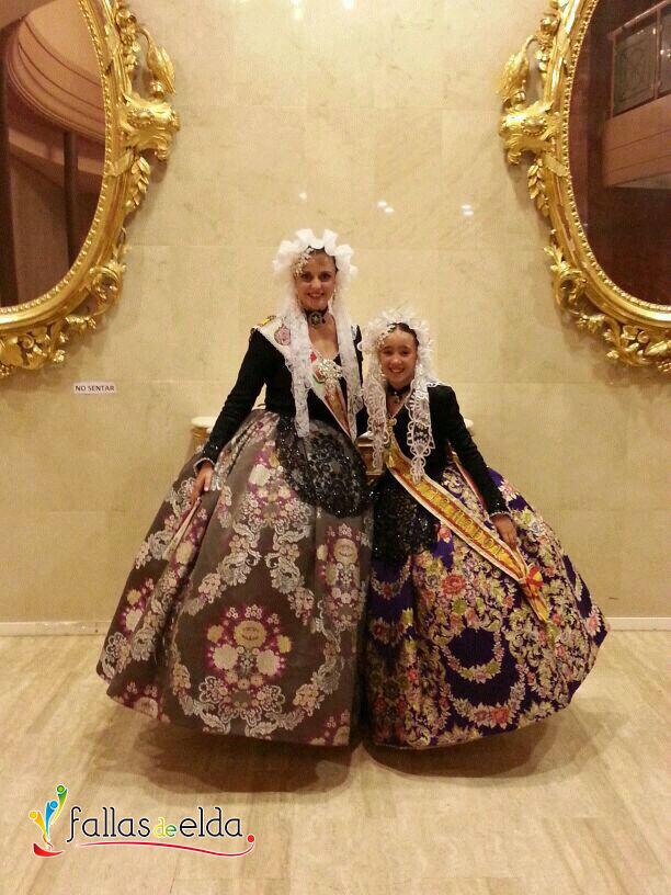 En la noche del sábado la Fallera Mayor Infantil de Elda, Marina Pérez García y la Dama de Honor de la Fallera Mayor de Elda, Anabel Rico Pérez acudieron con la Junta Central de Fallas como invitados a la Proclamación de las Reinas de las Fiestas Patronales de Elche.
