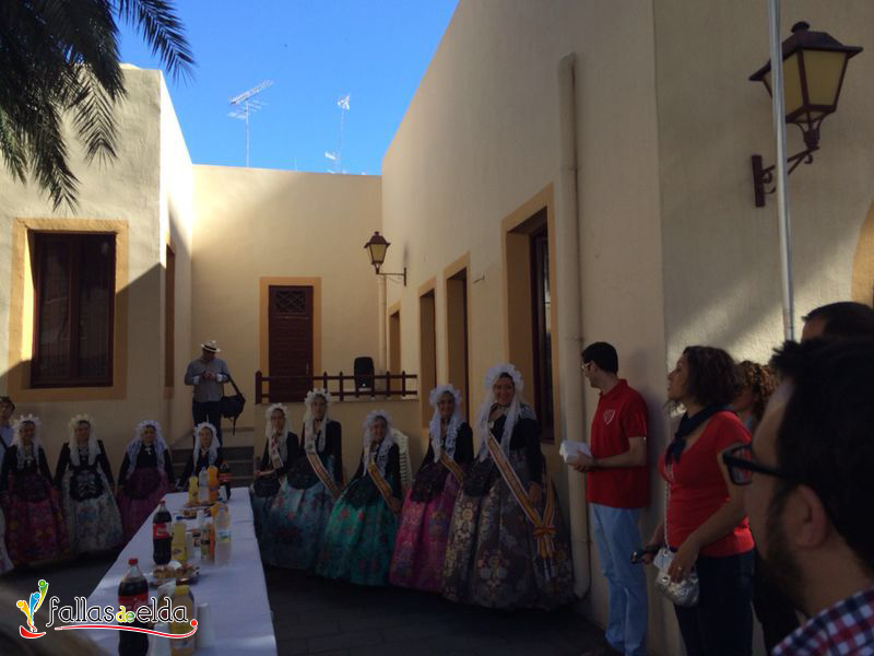 En la mañana del domingo las Candidatas a Falleras Mayores de Elda 2014 conocieron a los jurados encargados de elegir a los Cargos Oficiales de la Fiesta para el presente ejercicio. Compartieron un almuerzo junto a ellos y tras éste se desplazaron al Casino Eldense donde fueron recibidas por el Cronista Oficial de la ciudad el cual les dio a conocer la función e historia del mismo. Tras esto las candidatas comenzaron con las entrevistas personales junto al jurado. En el mismo acto las Falleras Mayores de Elda junto a sus Damas de Honor dedicaron unas emocionantes palabras de ánimo a la s candidatas.