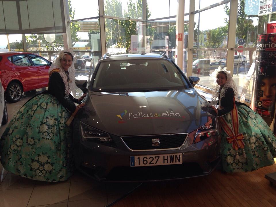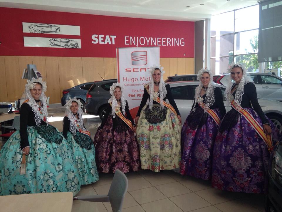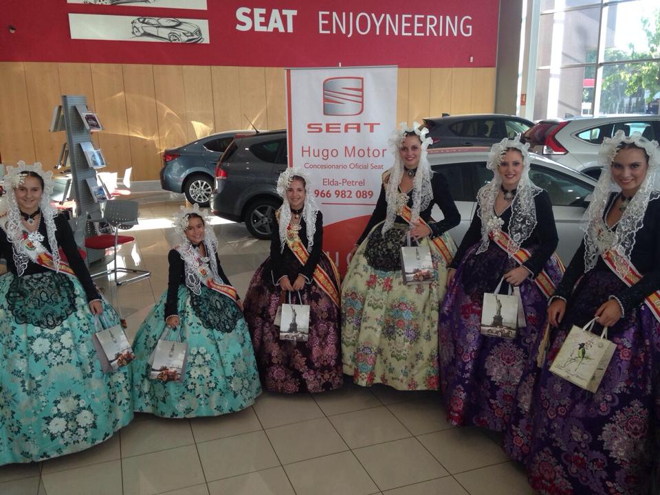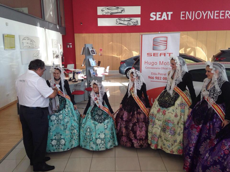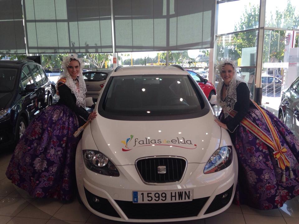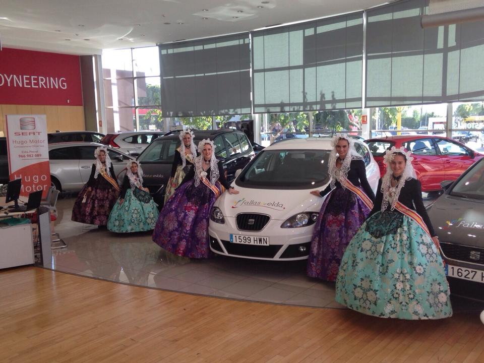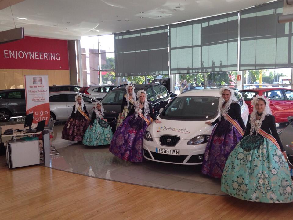 Tras la visita al Centro de Dia, la comitiva encabezada por los Cargos Falleros Oficiales 2014, recogieron los coches oficiales de la Casa Seat - Hugo Motor de Elda.