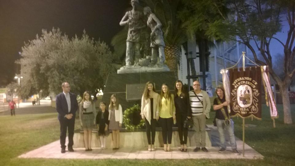 Ayer las Falleras Mayores de Elda y sus Damas de Honor asistieron a la Ofrenda a la Familia Zapatera, organizado por los Veteranos de San Crispín y San Crispiniano.