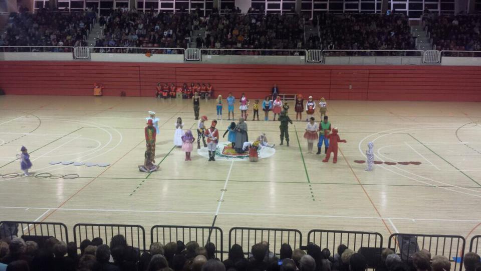 Las Falleras Mayores de Elda han asistido a la exhibición de la escuela municipal de mantenimiento este domingo por la tarde, como actuación invitada por la misma ha actuado la comisión ganadora del 1º Premio del XVI Festival Fallero, la Falla El Huerto interpretando su playback "Corazón de Plástico"
