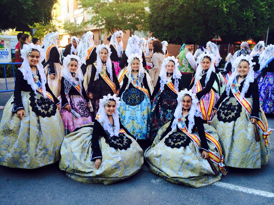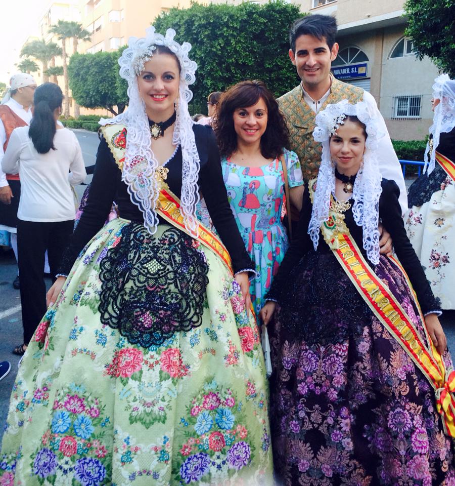 Ayer Anabel Rico Pérez, Fallera Mayor de Elda y Natalia Pérez Lledó, Fallera Mayor Infantil de Elda, asistieron al Pasacalles del Fuego y bendición de mantillas organizado por la Hoguera Maisonave de San Juan de Alicante.