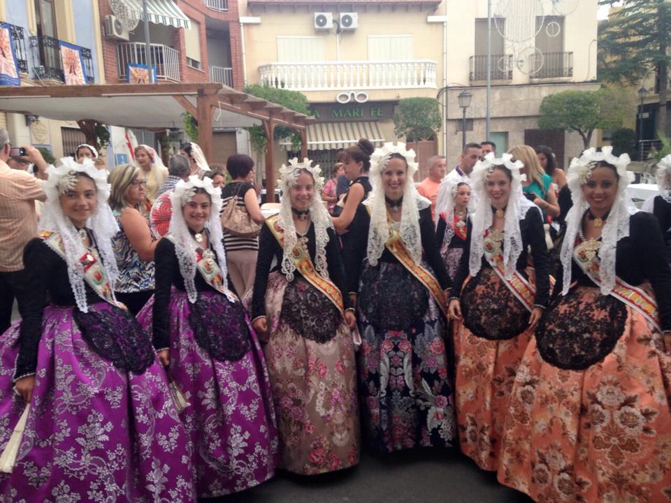 Las Falleras Mayores de Elda y sus Damas de Honor partiiciparon el pasado viernes en la Ofrenda de Flores a la Virgen del Remedio de las Fiestas de Pinoso.