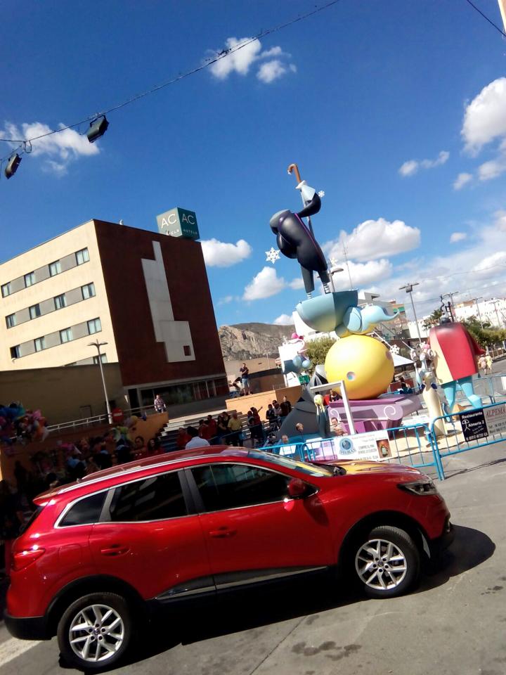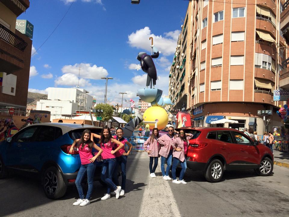 Esta mañana las Falleras Mayores de Elda junto con el jurado calificador de monumentos han visitado las Fallas, transportadas por los coches oficiales, cedidos por Automóviles Gomis (Renault).