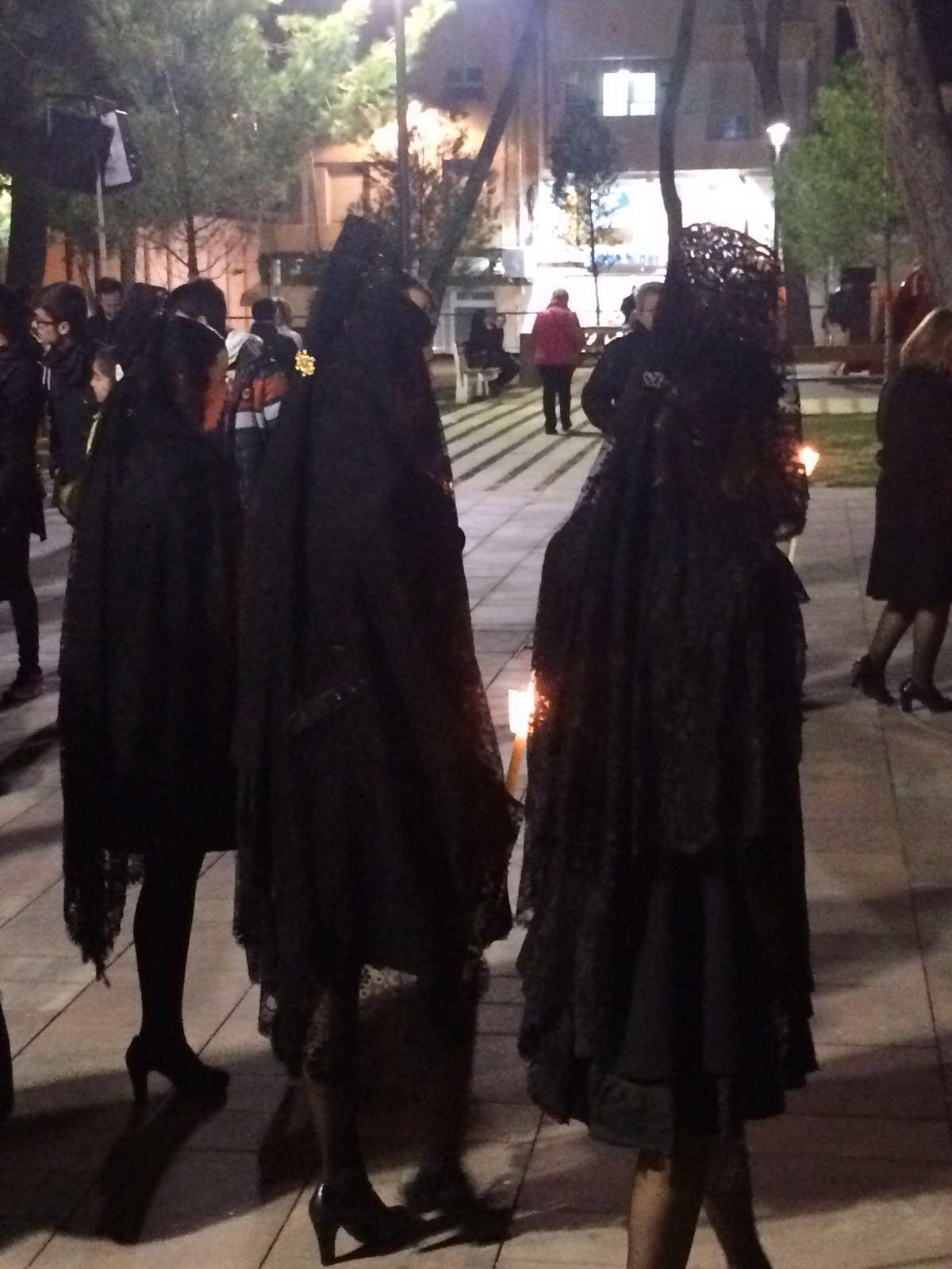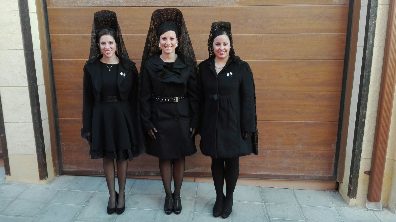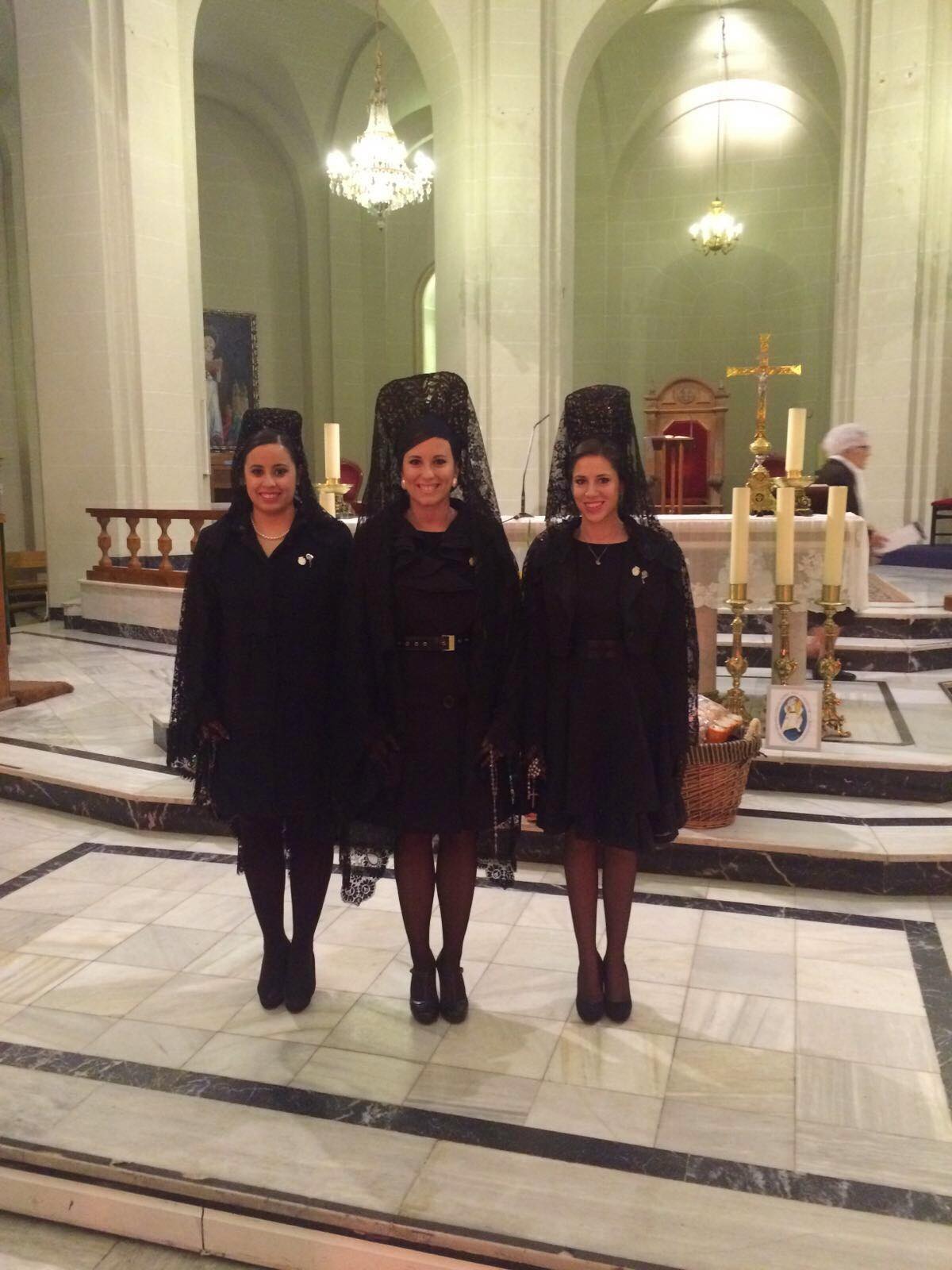 La Cofradía Santa Mujer Verónica Elda ha tenido el detalle de invitar a la fallera mayor de Elda Nerea Tortosa, así como a sus damas de honor Macarena y Miriam, al encuentro interdiocesano celebrado hoy en nuestra ciudad en la que han asistido a la misa celebrada por el obispo y la procesión en la cual han vestido de mantilla.