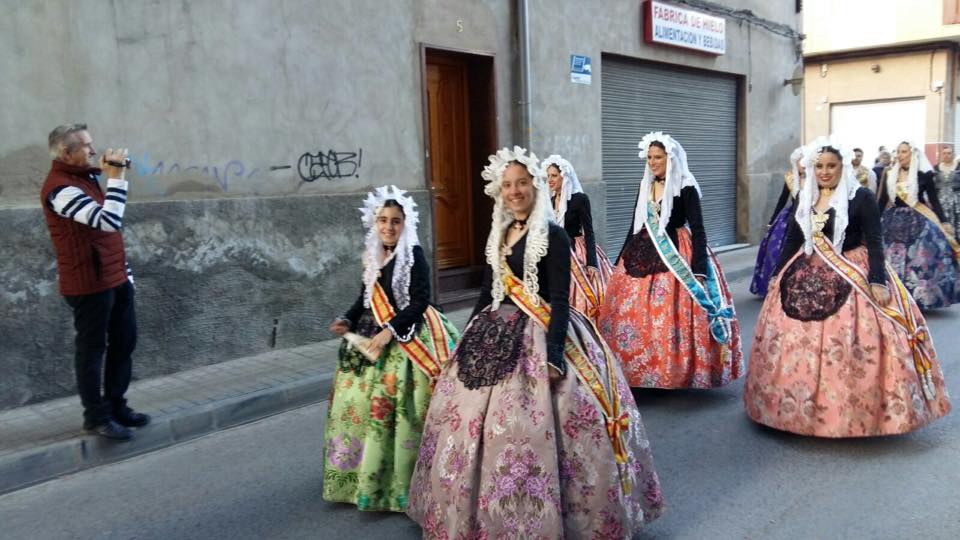El sábado, las Falleras Mayores de Elda y sus Damas de Honor acompañadas por la Vicepresidenta de la entidad, acudieron a la misa y posterior desfile organizado por la Falla Fraternidad, dentro de las actividades organizadas por la celebración de su medio año.