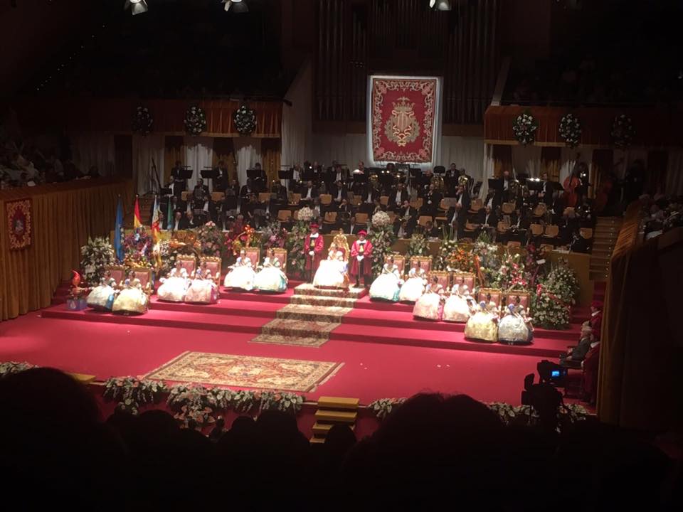 Han sido recibidas a la entrada del Palau de la Música por Ferrán Martínez y Manuel Jorge, delegados de Juntas Locales de #JCF. Nuestras máximas representantes han sido recibidas en el interior del Palau por Pere Fuset, Presidente de Junta Central de Valencia y Concejal de Cultura Festera.