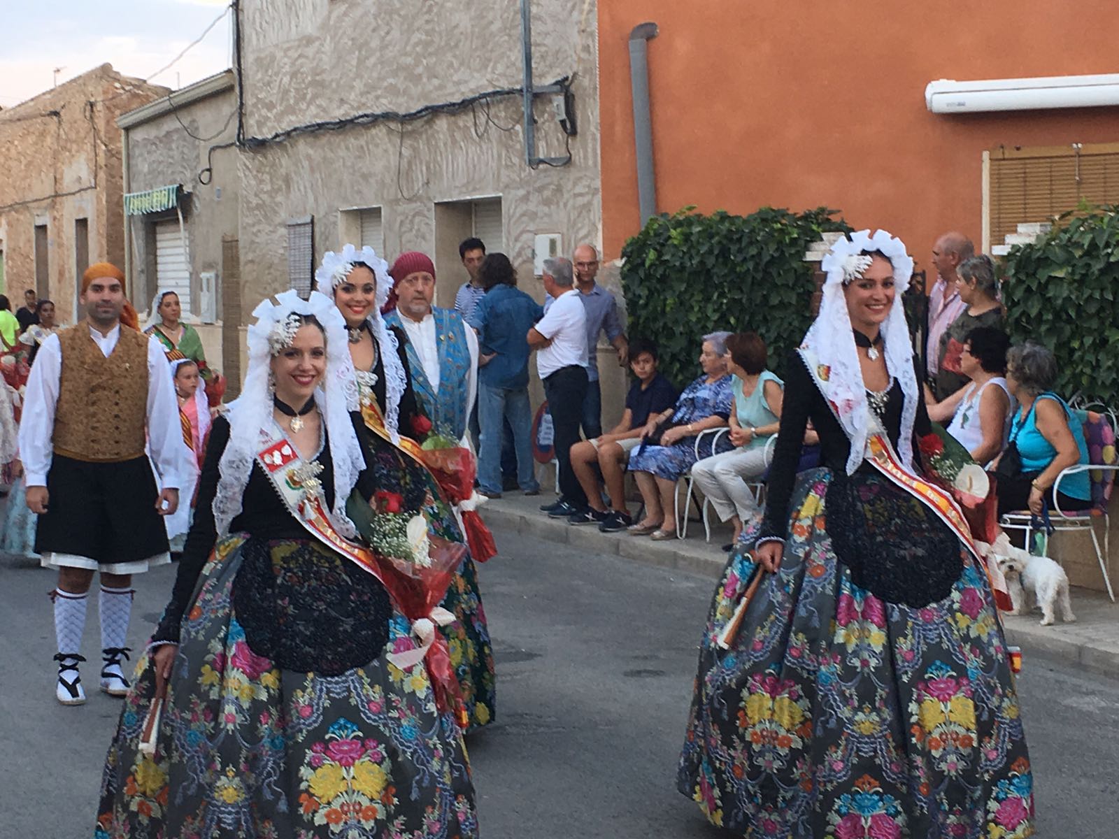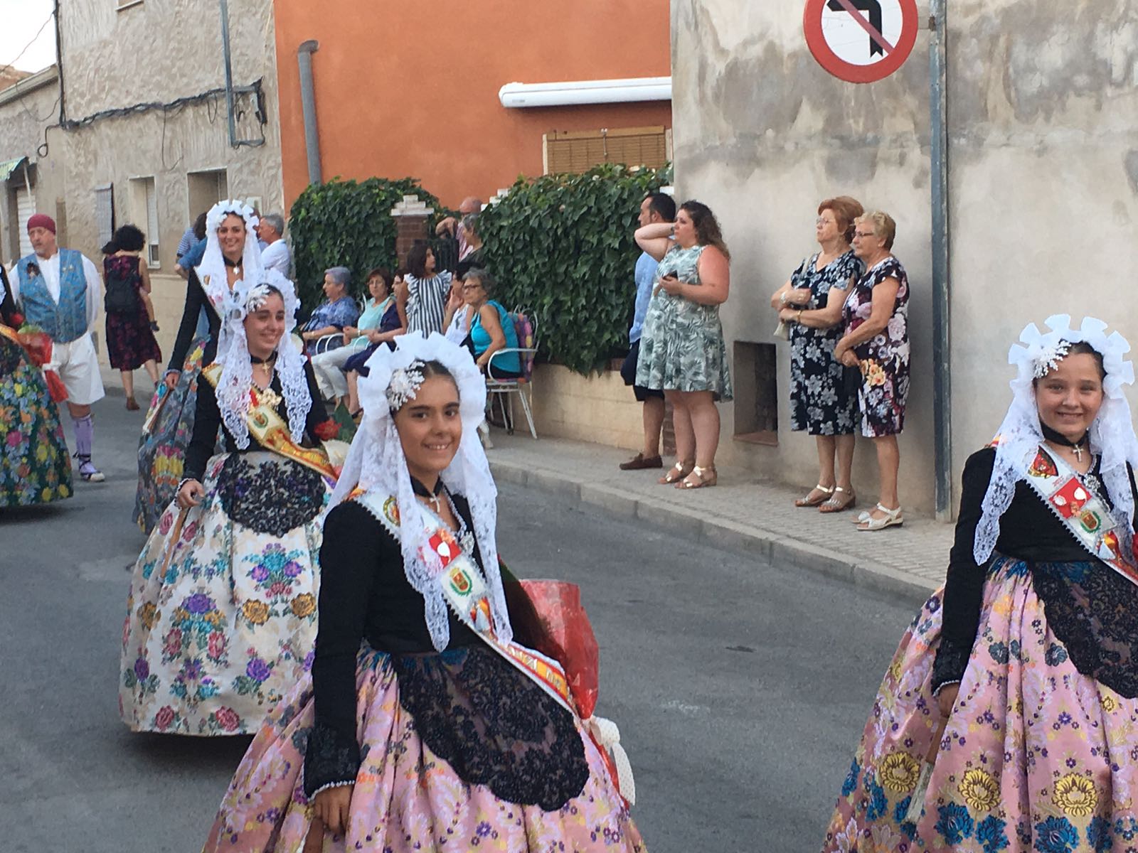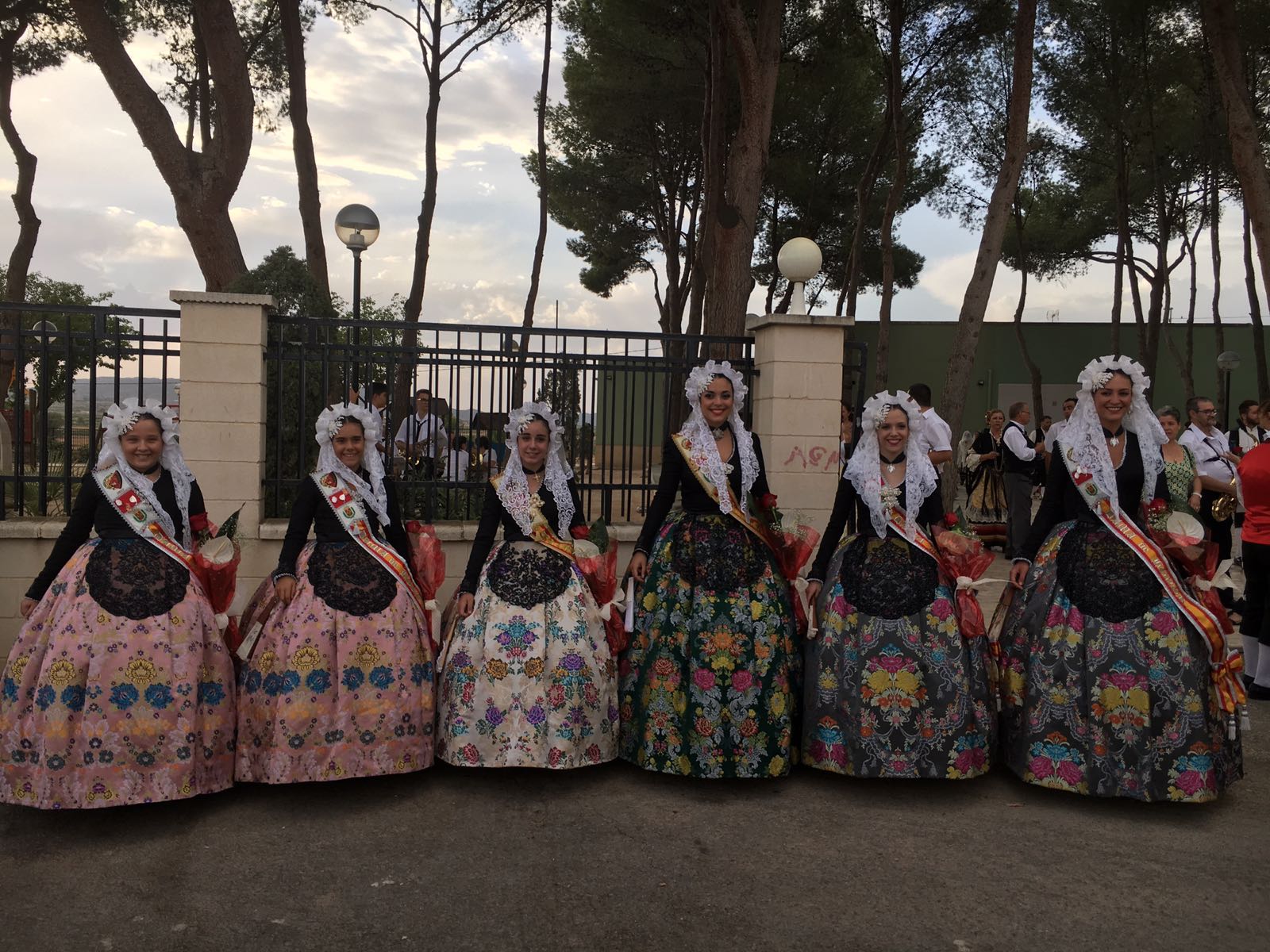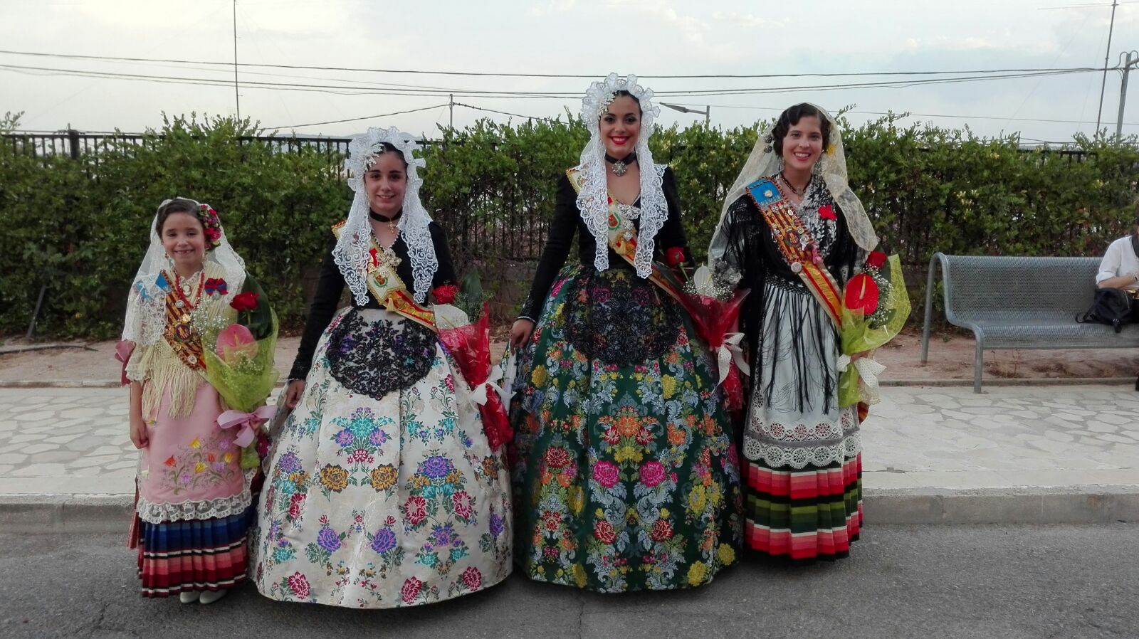 Las Falleras Mayores de Elda y sus Damas de Honor han participado en la Ofrenda de flores en honor a la Virgen del Remedio con motivo de la Feria y Fiestas de Pinoso.