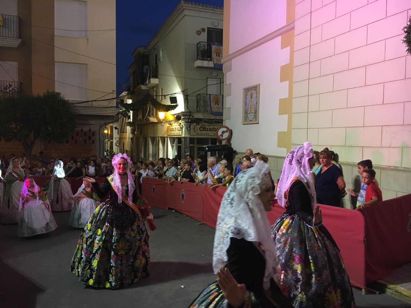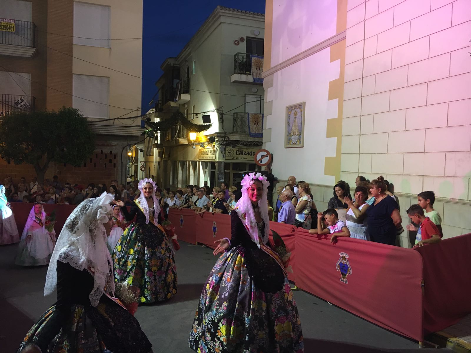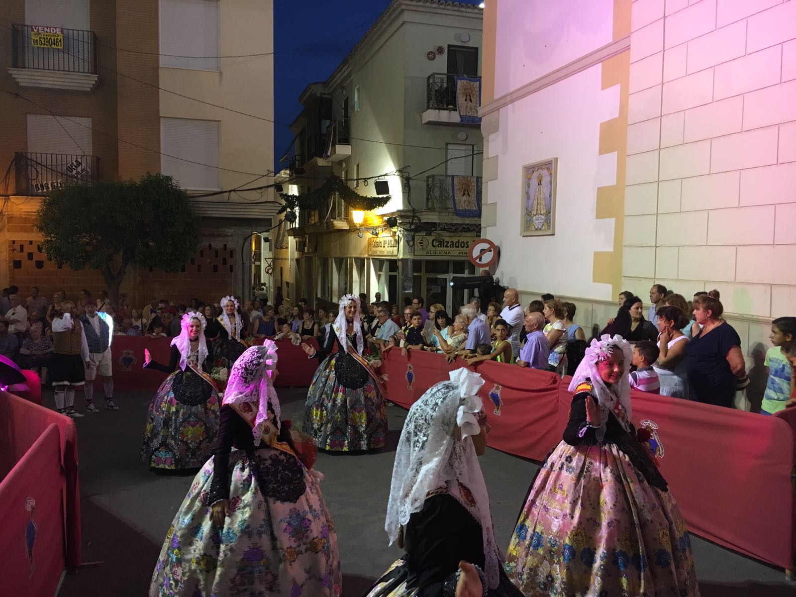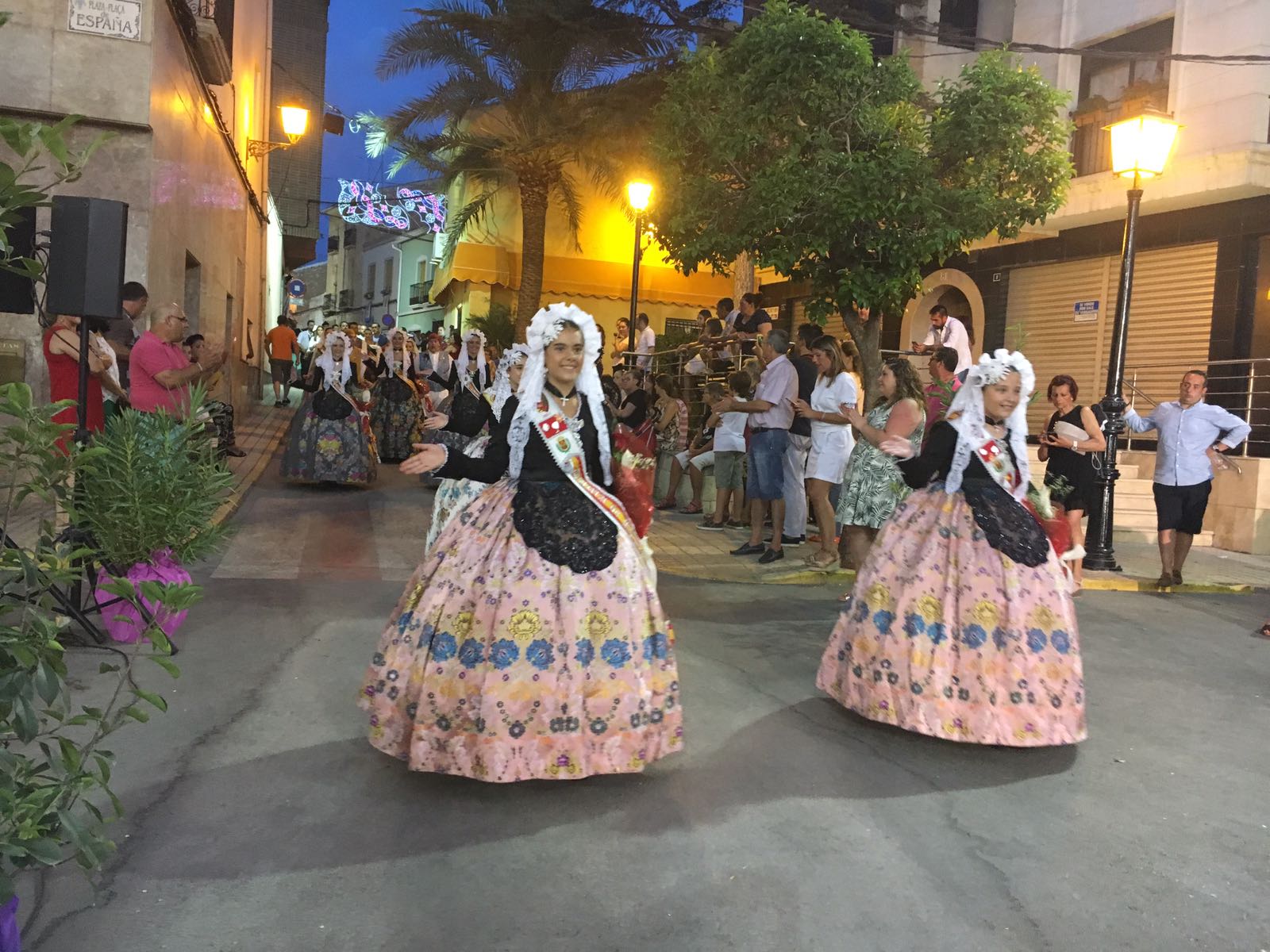 Las Falleras Mayores de Elda y sus Damas de Honor han participado en la Ofrenda de flores en honor a la Virgen del Remedio con motivo de la Feria y Fiestas de Pinoso.