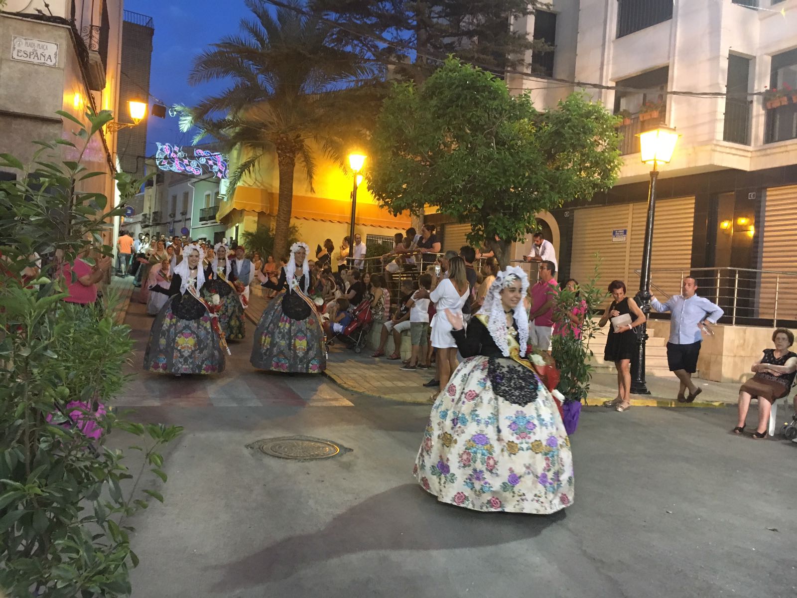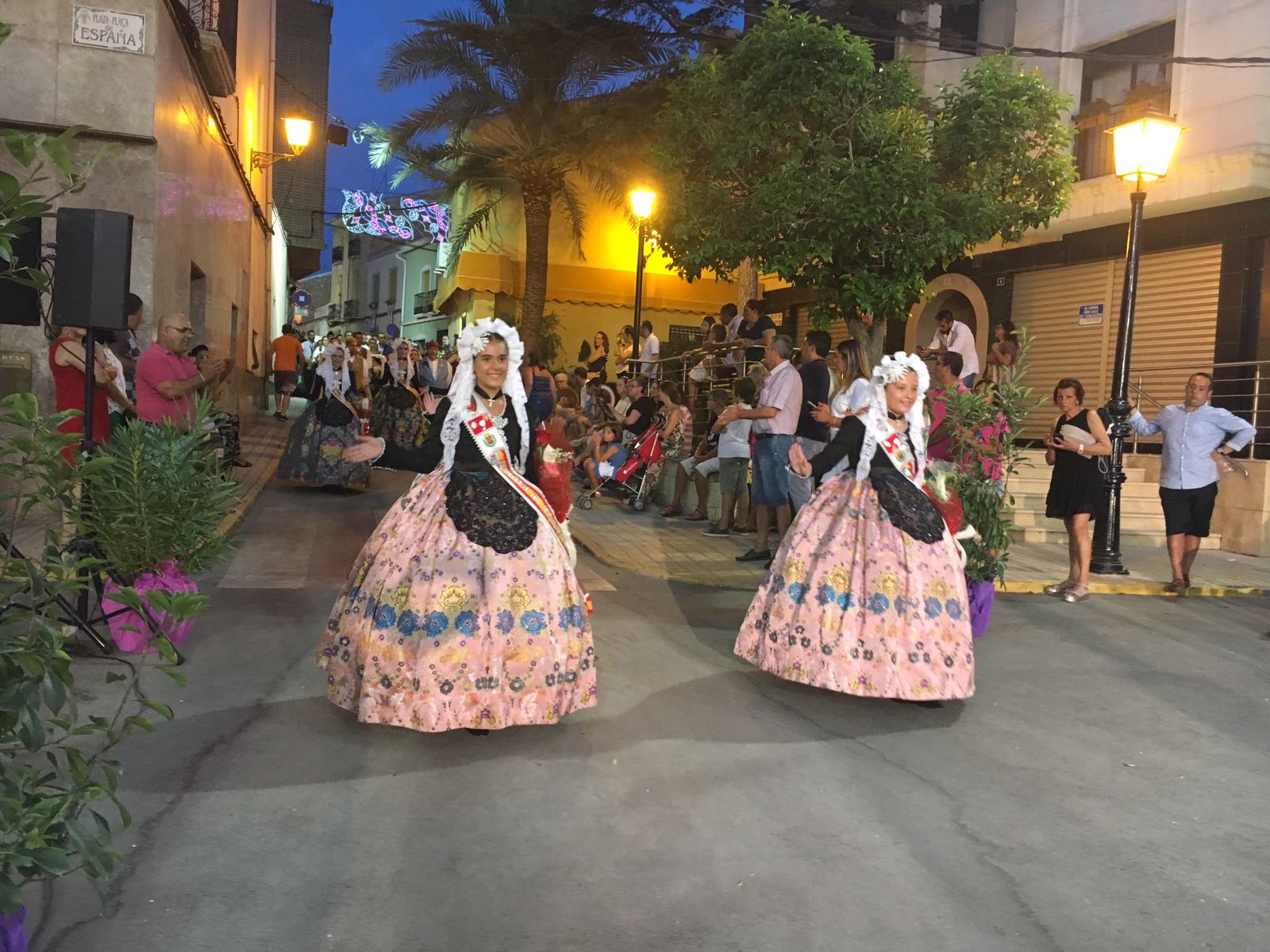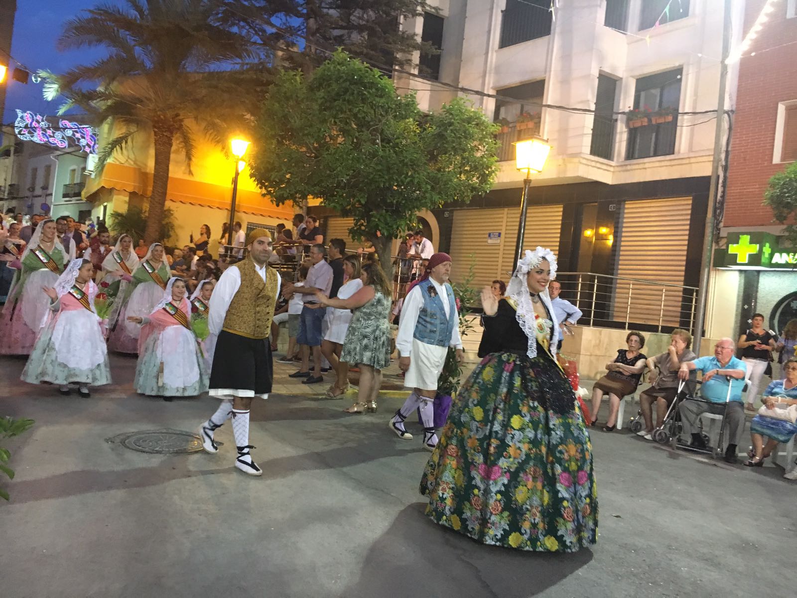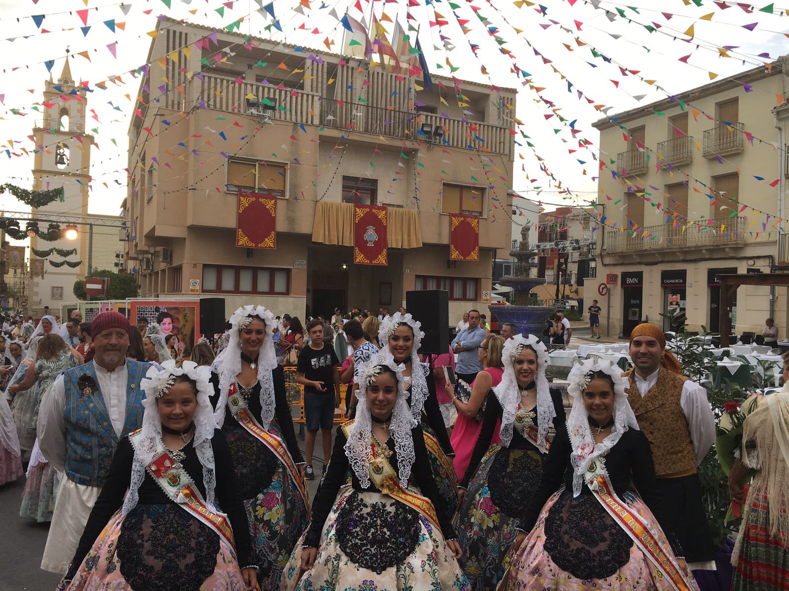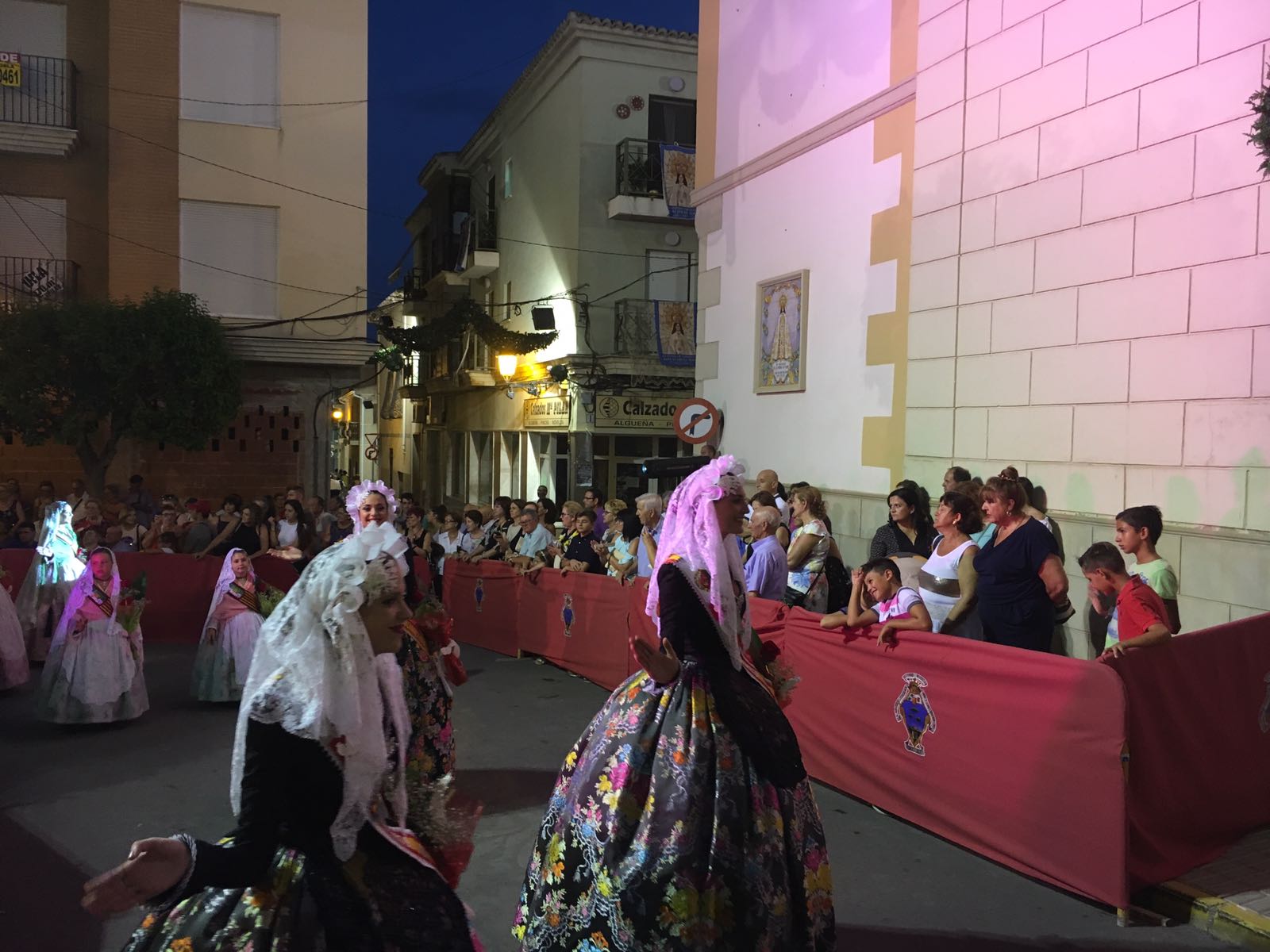 Las Falleras Mayores de Elda y sus Damas de Honor han participado en la Ofrenda de flores en honor a la Virgen del Remedio con motivo de la Feria y Fiestas de Pinoso.