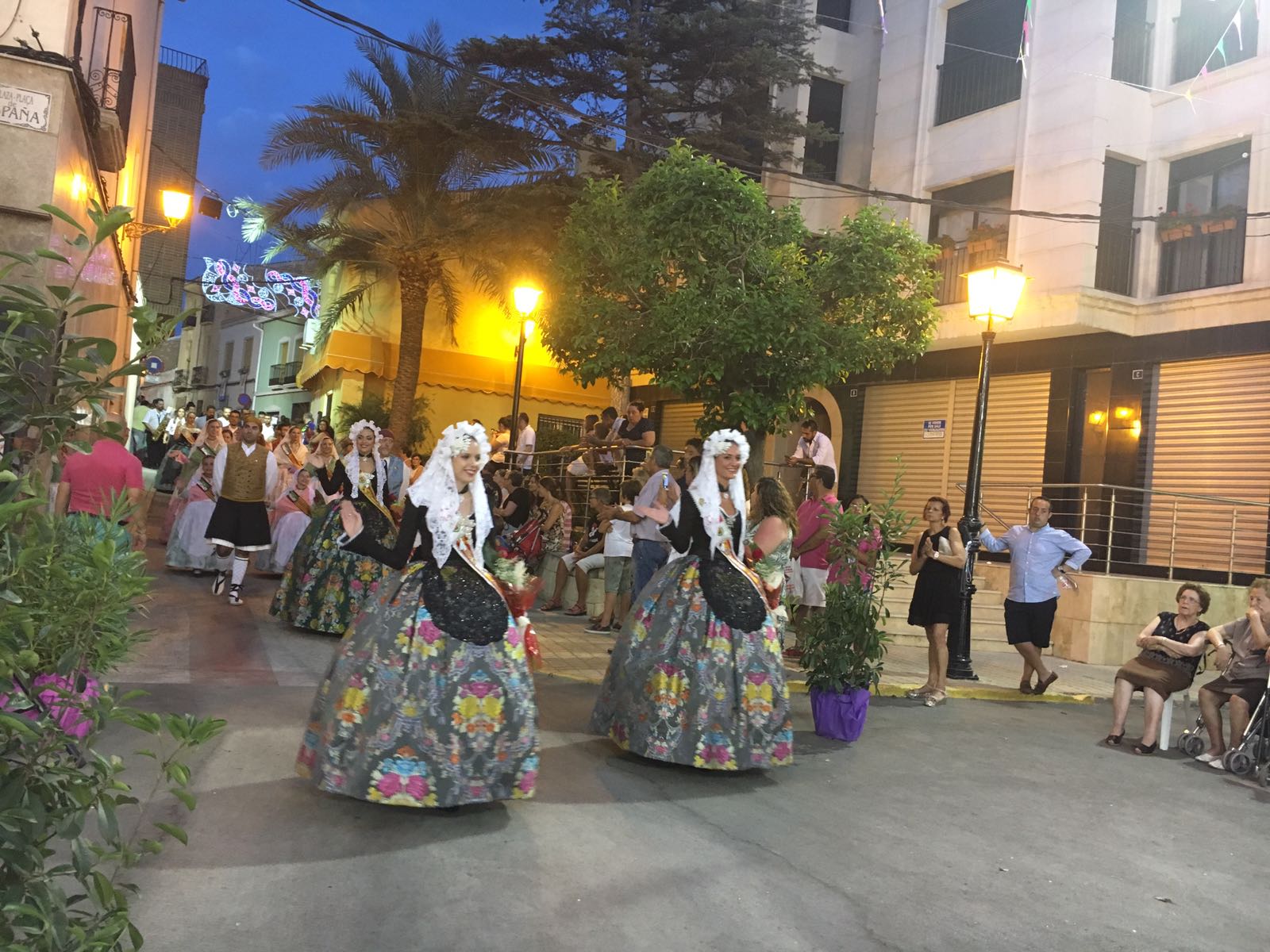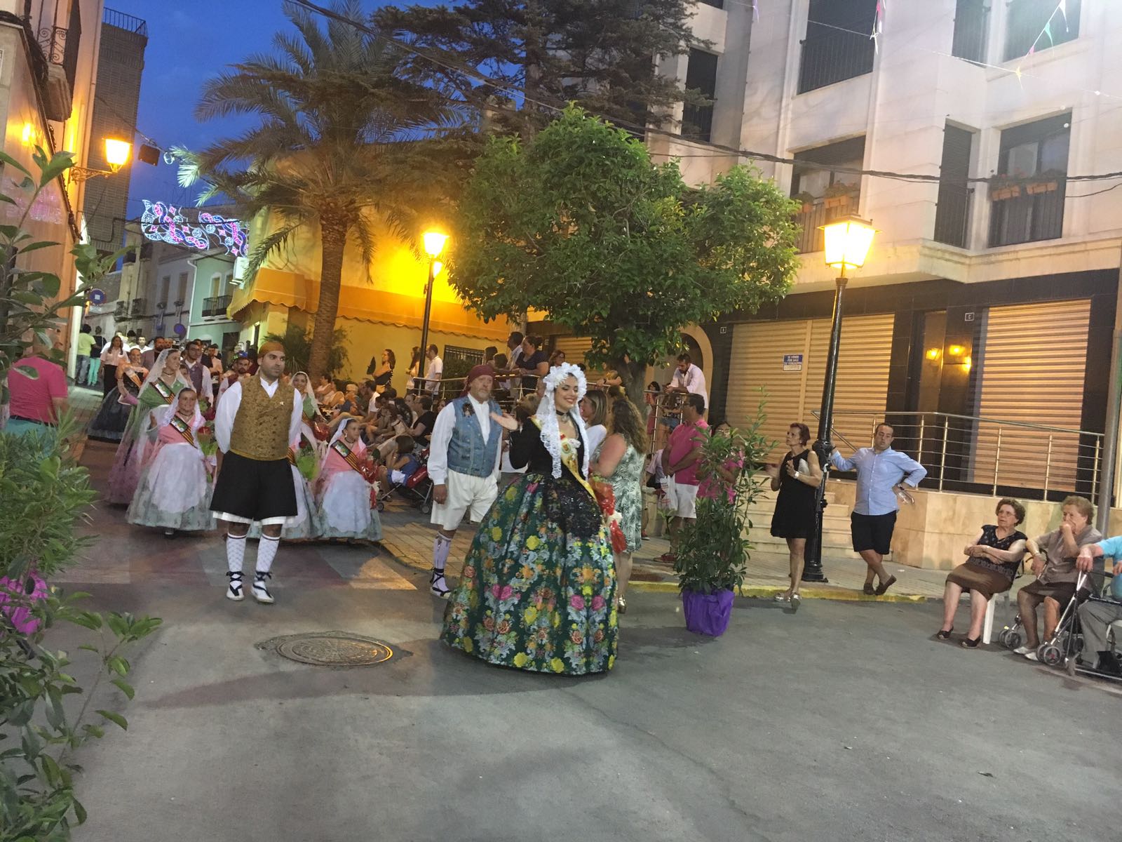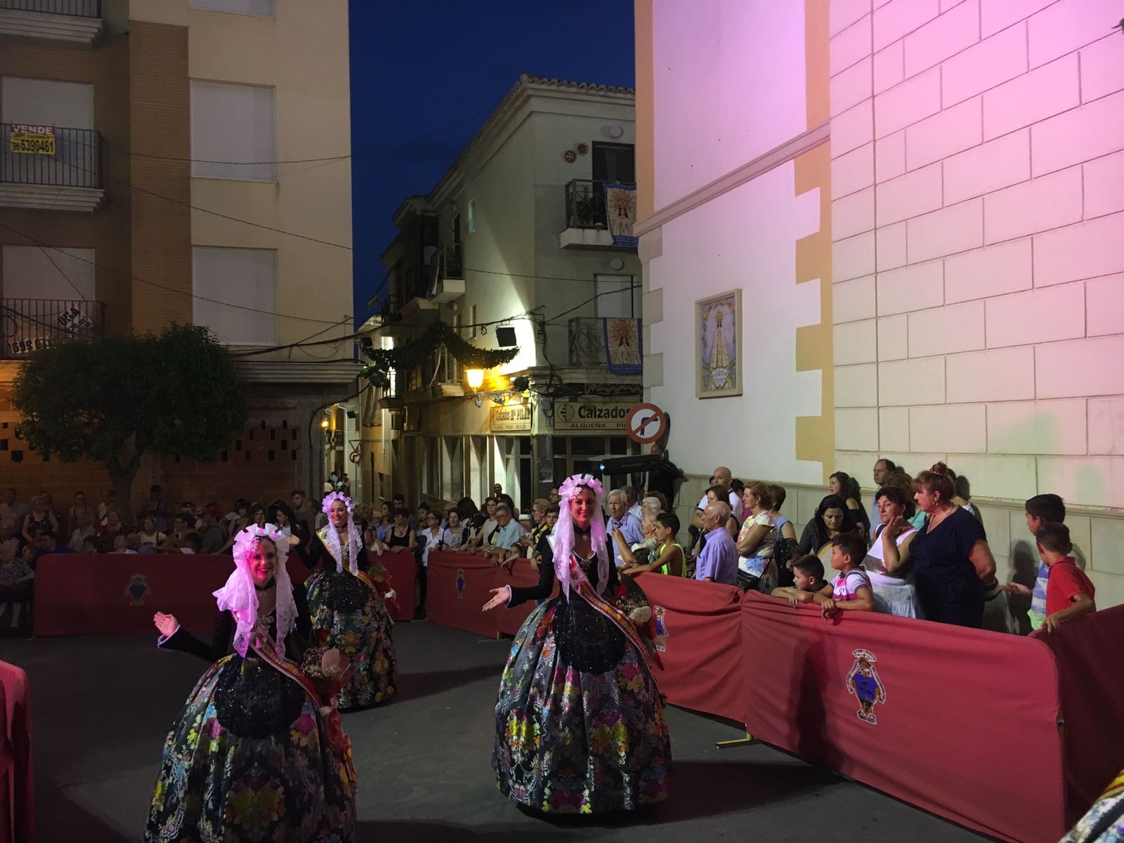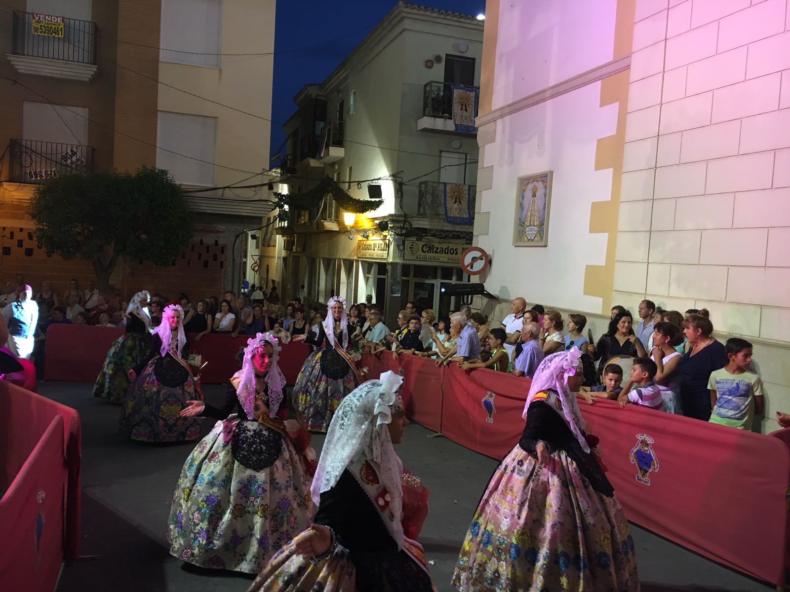 Las Falleras Mayores de Elda y sus Damas de Honor han participado en la Ofrenda de flores en honor a la Virgen del Remedio con motivo de la Feria y Fiestas de Pinoso.