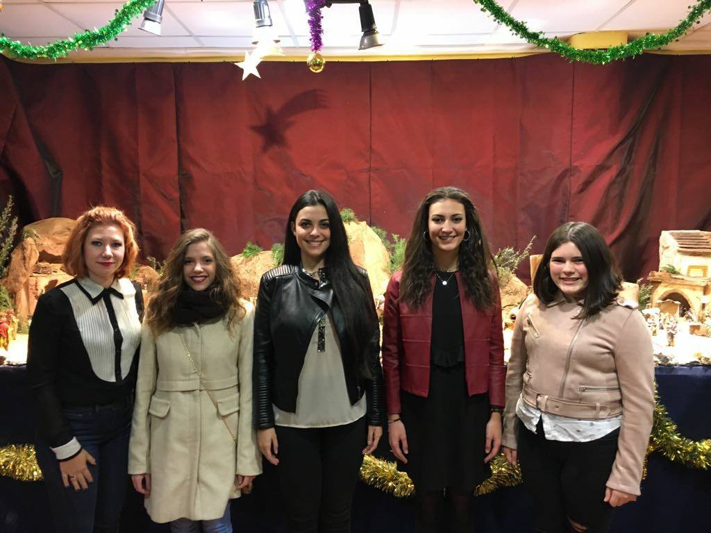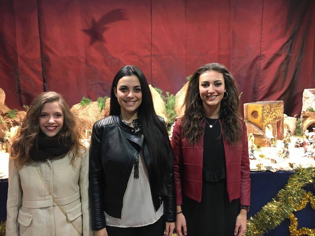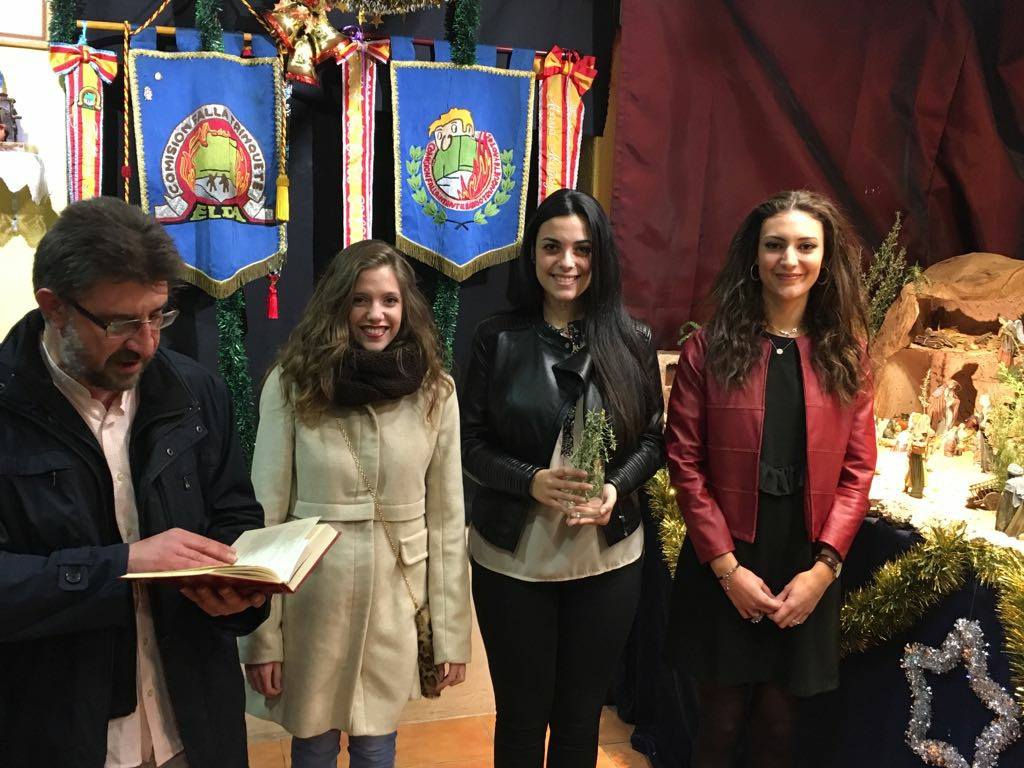 La Fallera Mayor de Elda y su damas de honor Begoña González Ibáñez y Julia María Vera Serna han sido invitadas a la inauguración del belén de la Falla Trinquete.