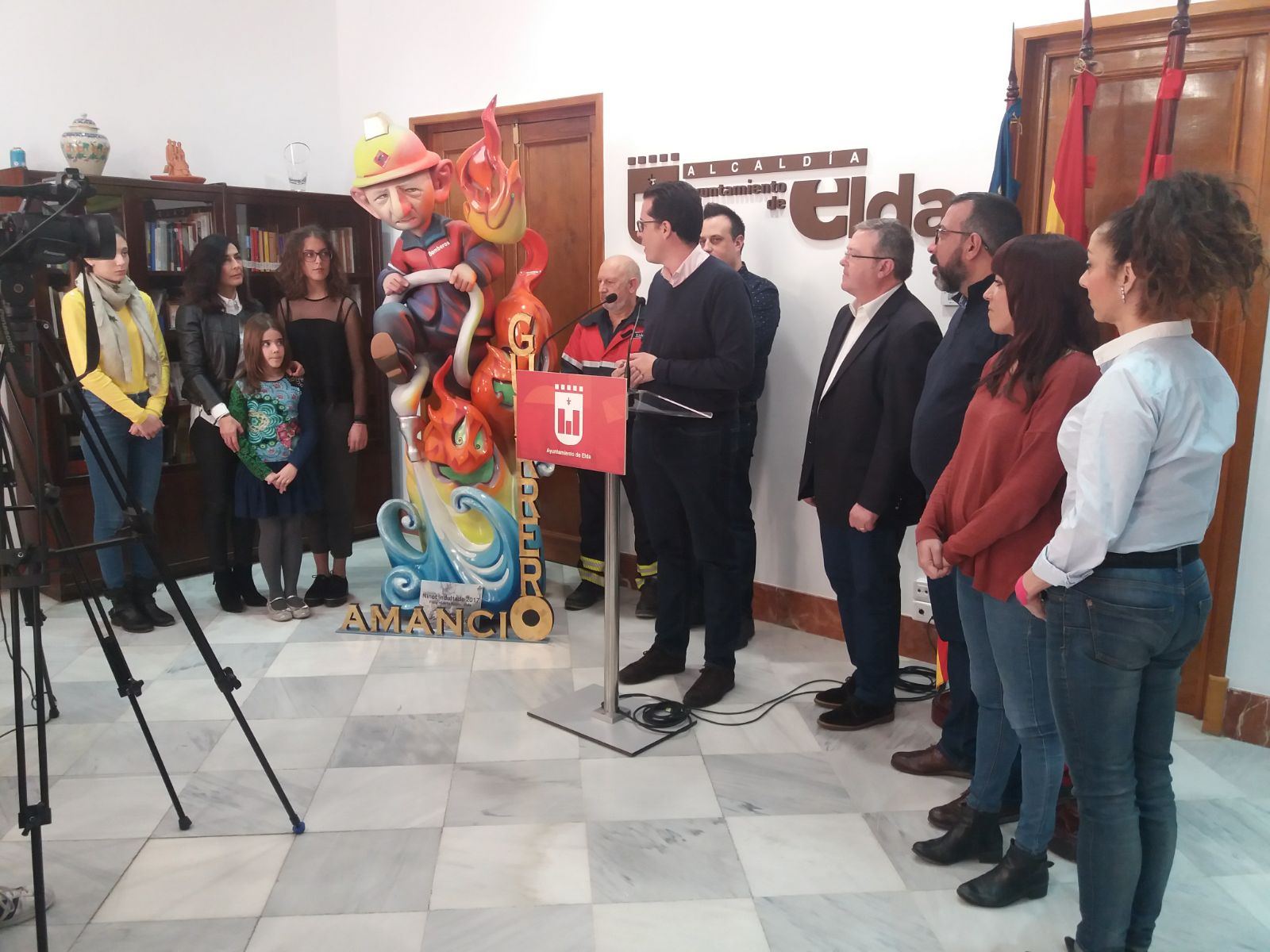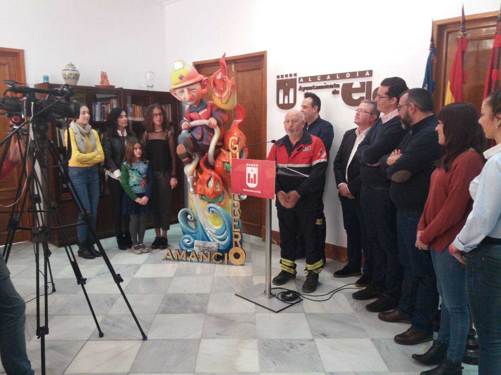 Esta mañana la alcaldía del Ayuntamiento de Elda ha acogido el acto de donación del ninot homenaje a Amancio Guerrero, jefe del Parque de Parque De Bomberos De Elda, al MUSEO BOMBEROS - Consorcio Provincial de Alicante (MUBOMA).
