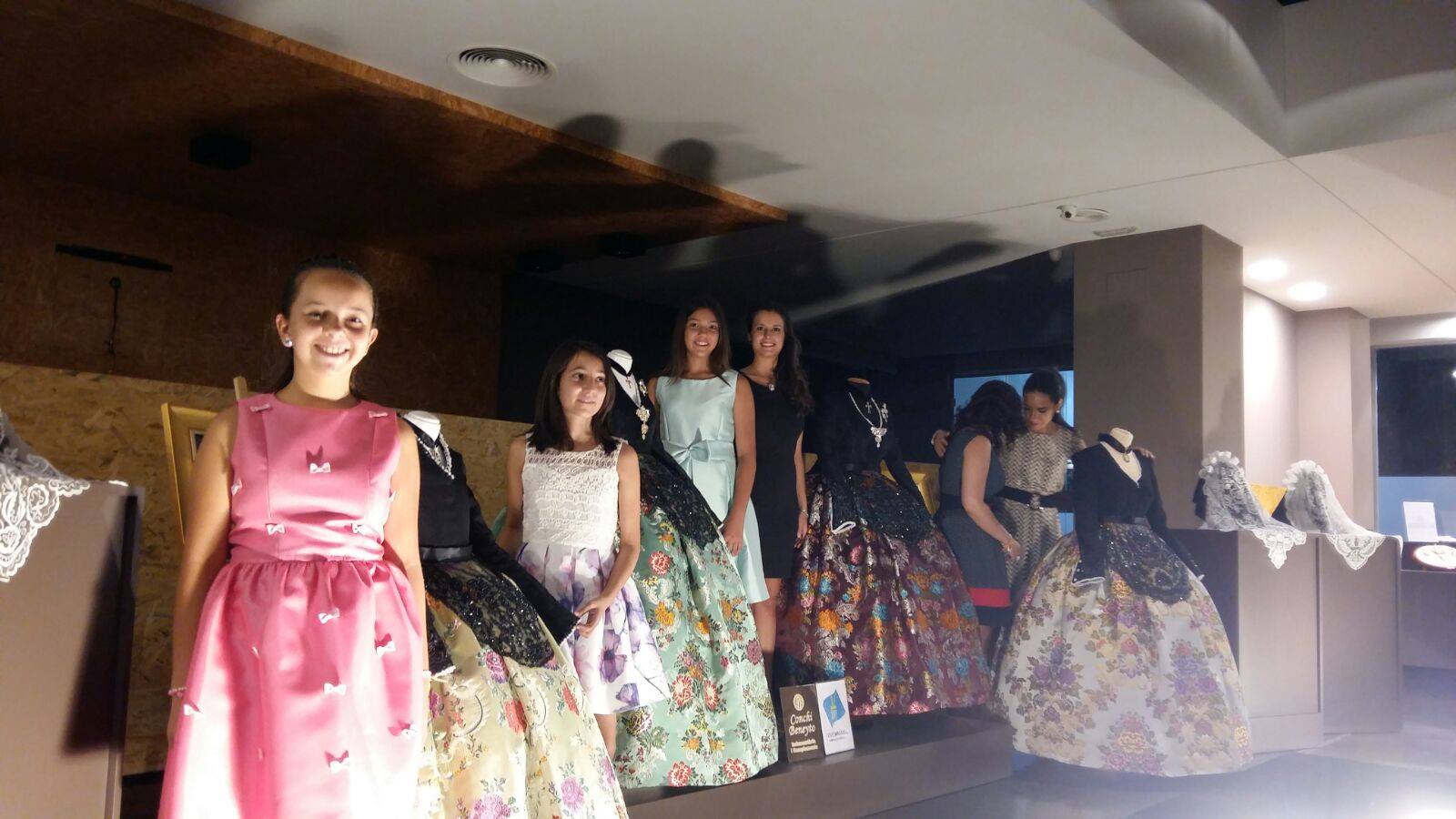 Hemos presentado, en el Museo del Calzado, los trajes de las Falleras Mayores de Elda y sus damas de honor. Así como el dibujo que llevarán las Falleras Mayores en sus faldas llamado "Fallera Mayor de Elda".