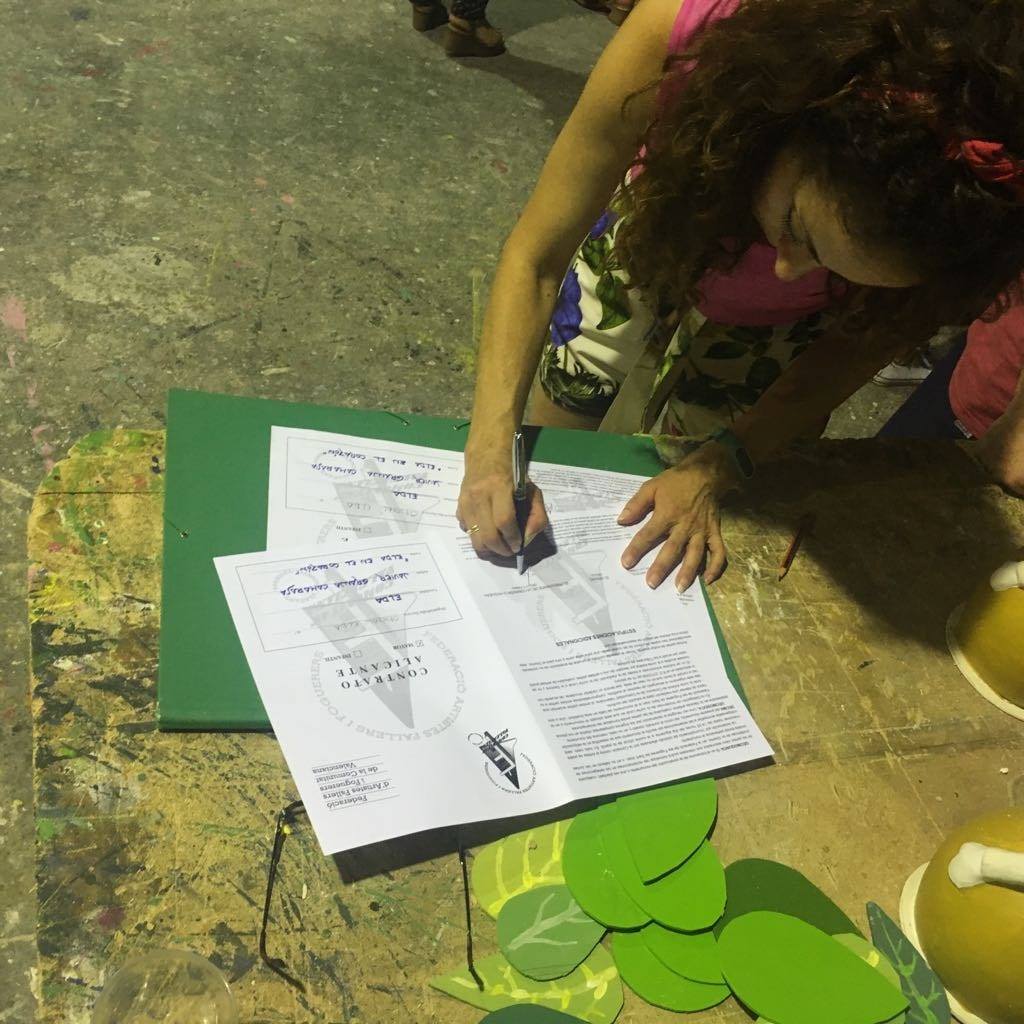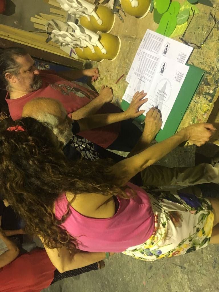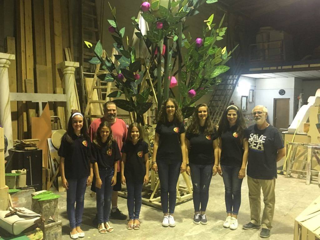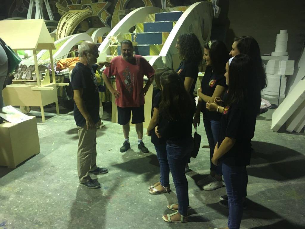 Este jueves, las falleras mayores de Elda, junto con sus damas de honor, hicieron una visita al taller de Javier Granja a ver cómo se va desarrollando la falla oficial.