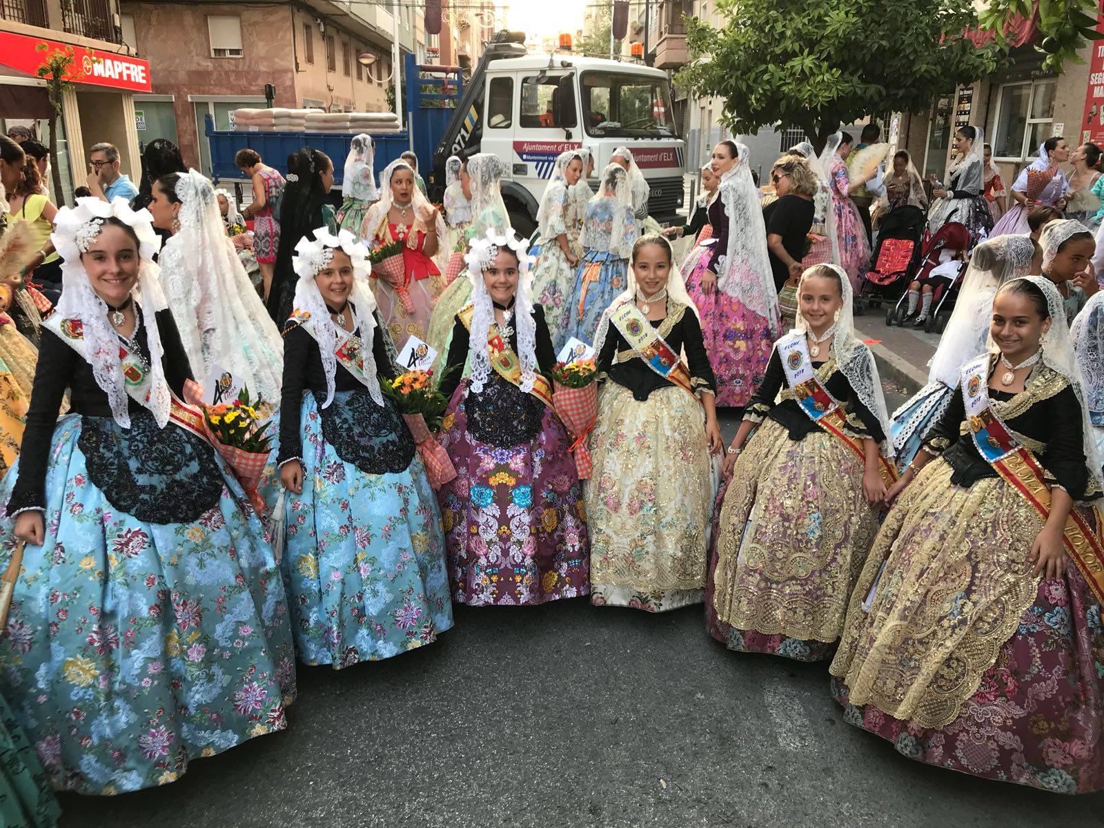 La Fallera Mayor Infantil de Elda junto a sus Damas de Honor asistieron a la Ofrenda de Flores a la Virgen de la Asunción.