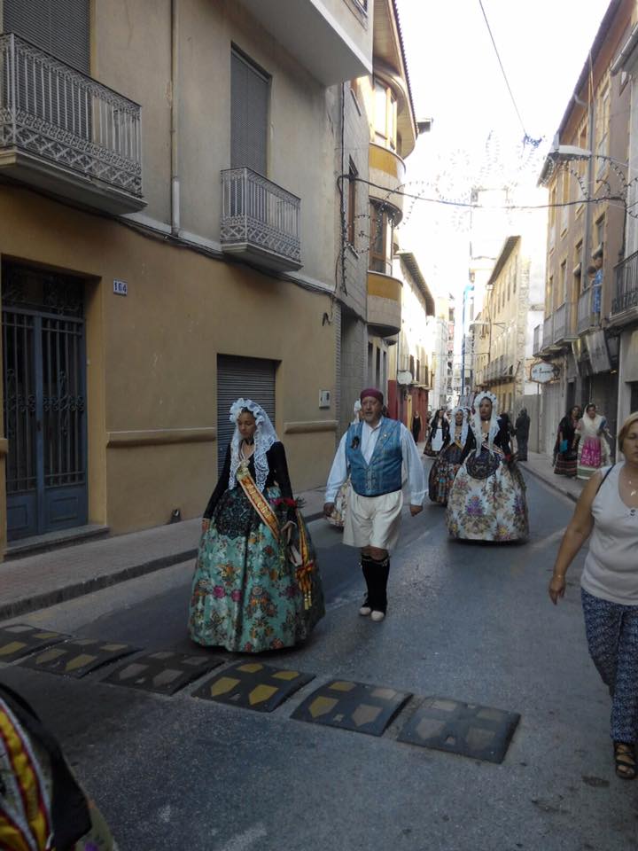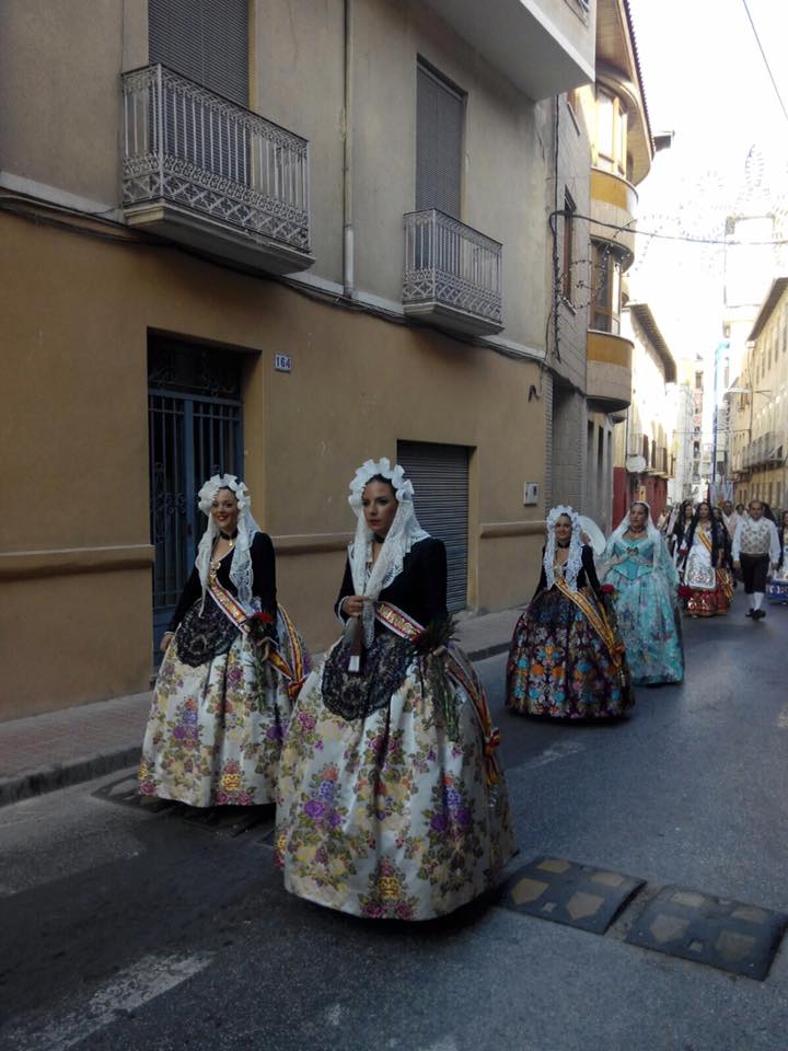 Nuestros cargos han estado en la ofrenda de flores y frutos a la Virgen del Remedio invitados por la Junta Festera de Monovar.