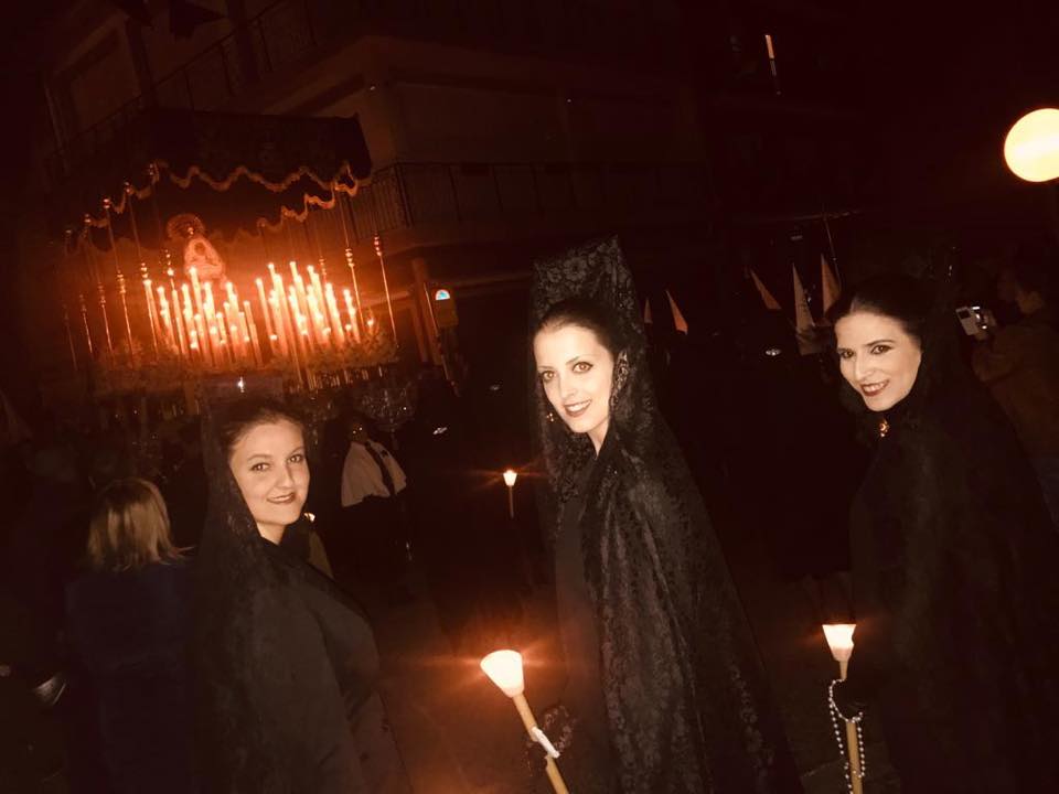 Esta semana nuestra Fallera Mayor de Elda y sus Damas de Honor, así como muchas de las Falleras Mayores de las diferentes comisiones de nuestra ciudad participan en la Semana Santa eldense como damas de mantilla, acompañando a las cofradías Cofradía Santa Mujer Verónica Elday Hermandad de Nuestra Señora de la Soledad de Elda en las procesiones del martes, jueves y viernes santo.