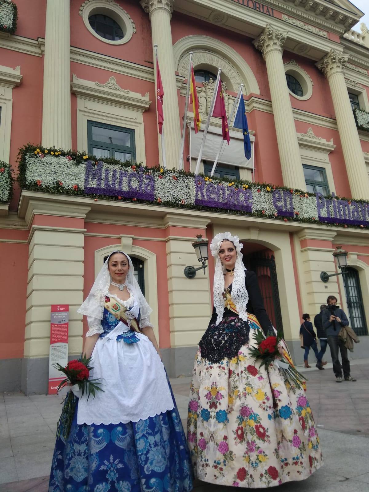 Nuestra Fallera Mayor de Elda, Ana Ruano y la presidenta de Junta Central de Fallas, Isabel Villena han viajado a Murcia para disfrutar de los días grandes de las Fiestas de la Primavera junto a la Federación de Peñas Huertanas.