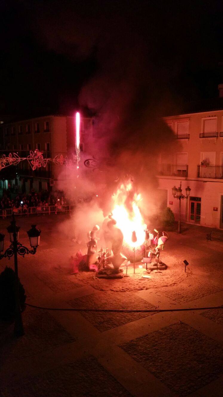 Y como colofón, por la noche, las diferentes cremás. Empezamos por la falla oficial, y terminando por los primeros premios infantil (Falla Estación) y adulto (falla Huerta Nueva)