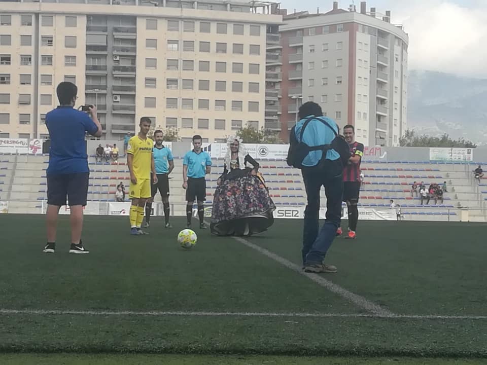 El domingo nuestra Fallera Mayor de Elda, Eva Vicente acudió al Estadio Nuevo Pepico Amat para realizar el saque de honor en el partido que tuvo lugar entre el Club Deportivo Eldense (Oficial) y el Villarreal C.