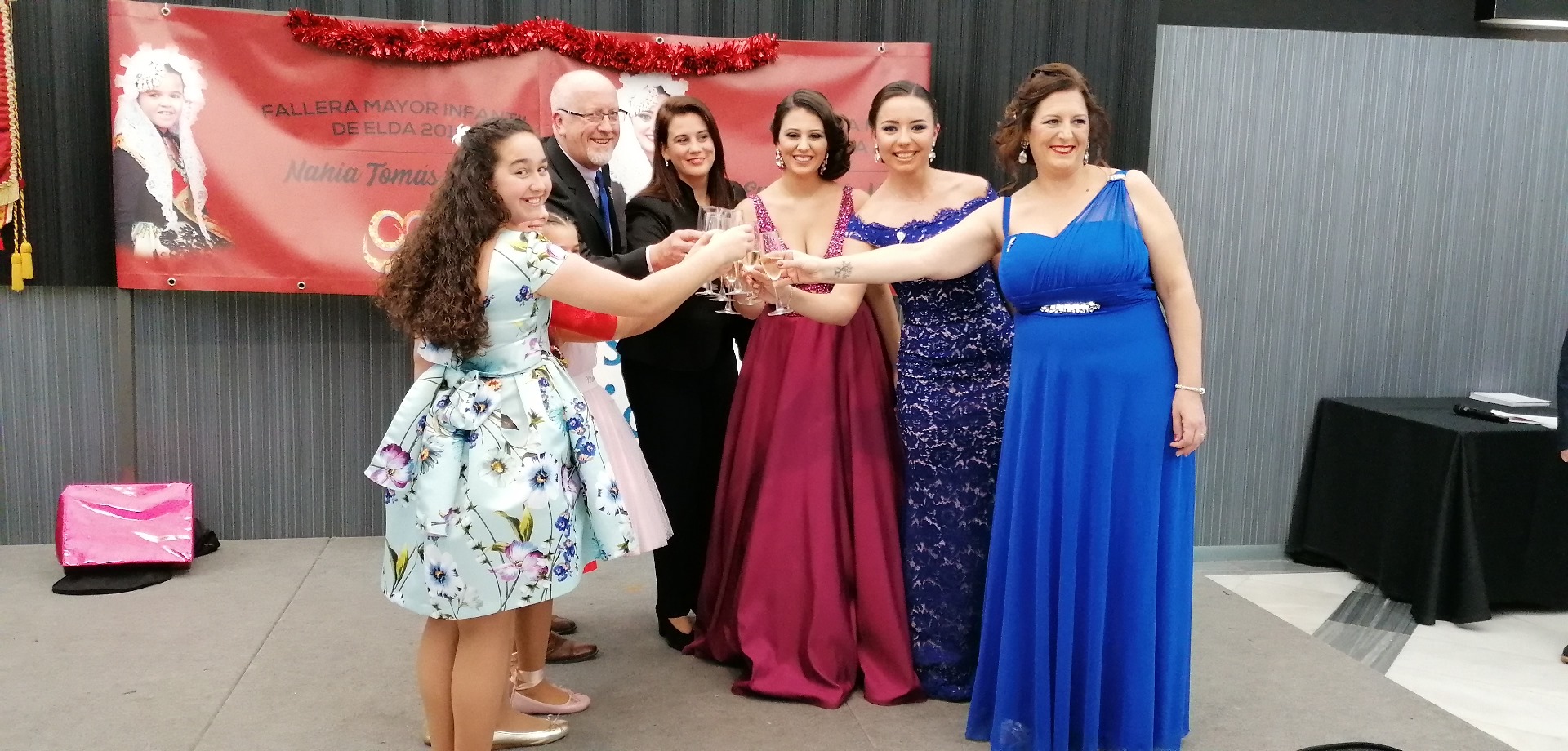 Durante este evento las Falleras Mayores de Elda han brindado con los asistentes por una Navidad llena de ilusión. También se han entregado los Galardores falleros 2019: