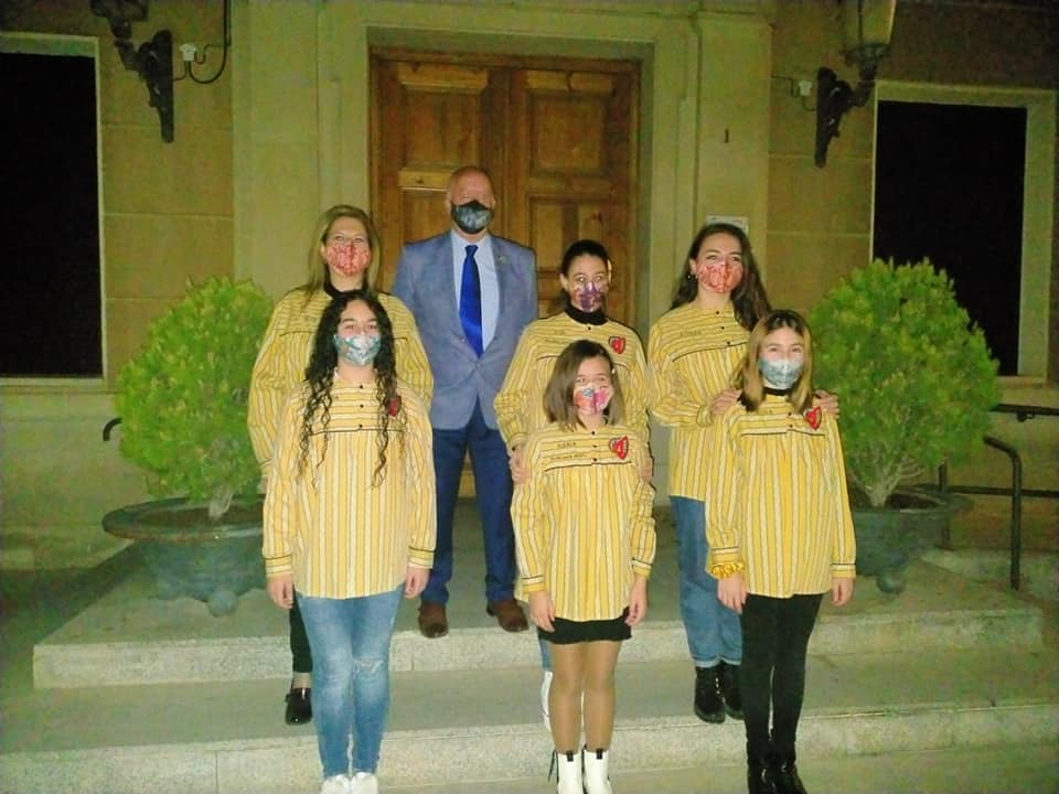 Nuestras falleras mayores de Elda Nahia y Eva, sus damas de honor Ainhoa, Ariadna, Susi y Ainara y el presidente de Gestora Fernando Álvarez, también estuvieron presentes y disfrutando de los fuegos artificiales que se lanzaron la noche del sábado con motivo del medio año fallero