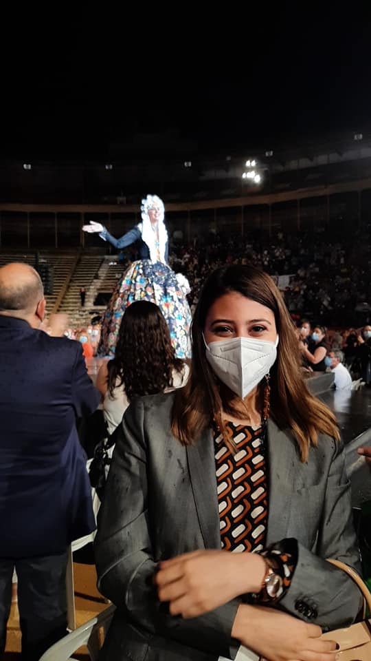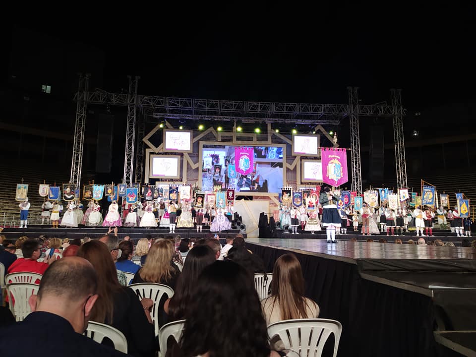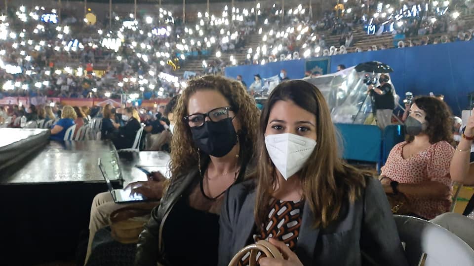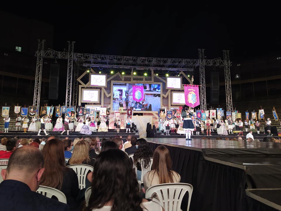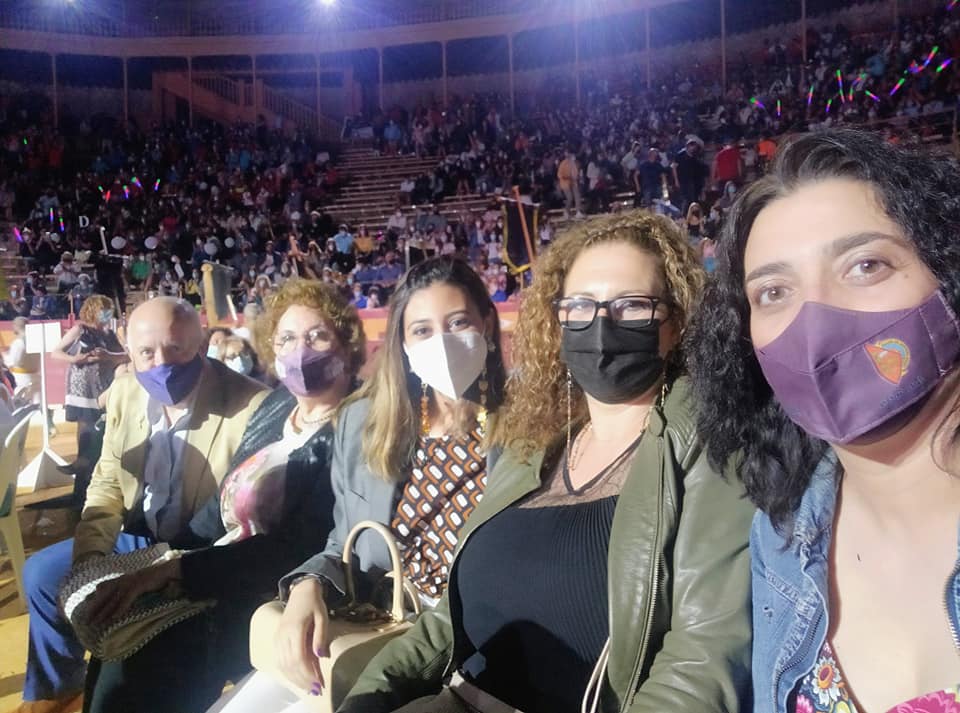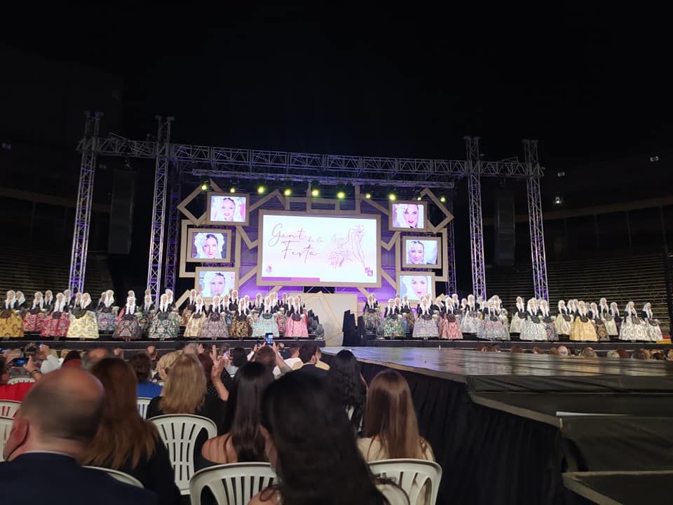 Eva Vicente Martínez fallera mayor de Elda, su dama de honor Susi Tebar Gil acompañadas por el presidente de Junta Gestora Fernando Álvarez y Adela Verdú, asistieron al acto de elección de la belleza del fuego de Alicante 2022 y sus damas de honor, la elegida fue Marina Niceto Valera.