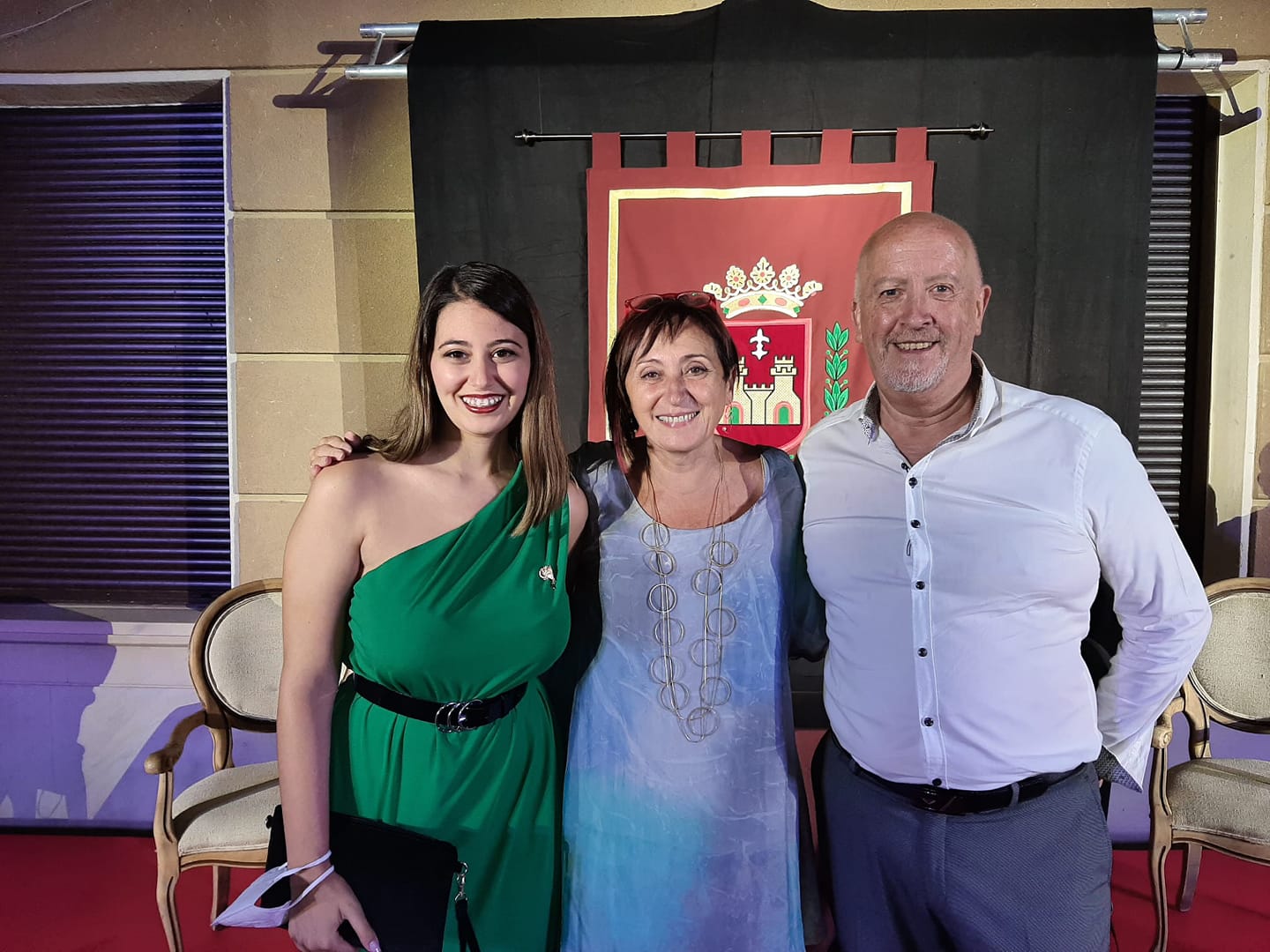 Eva Vicente Martinez, fallera mayor de Elda, y Fernando Alvarez Sempere, presidente de Junta Gestora, asistieron en la plaza del Ayuntamiento de Elda, al acto de nombramiento de hijos predilectos de la ciudad a Elia Barceló y Antonio Porpetta.
