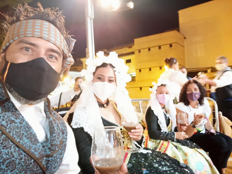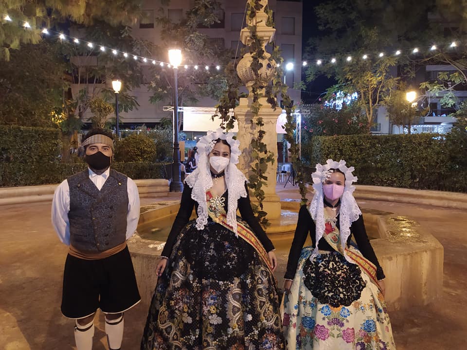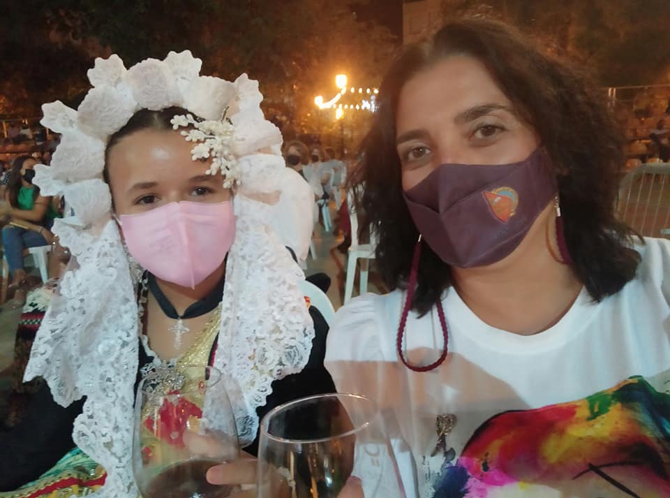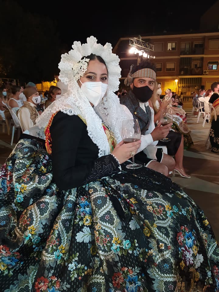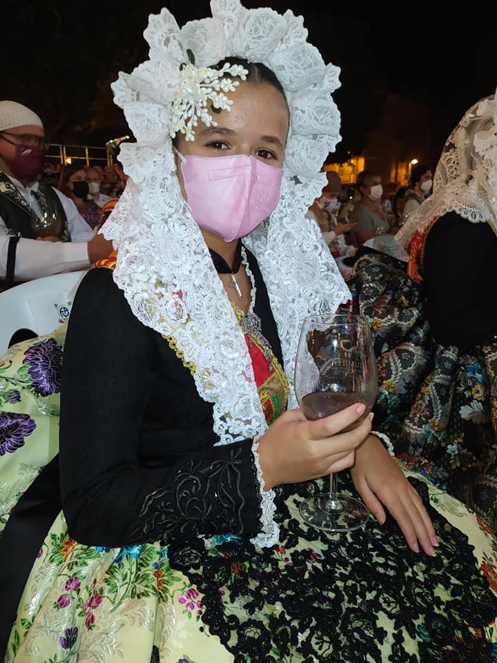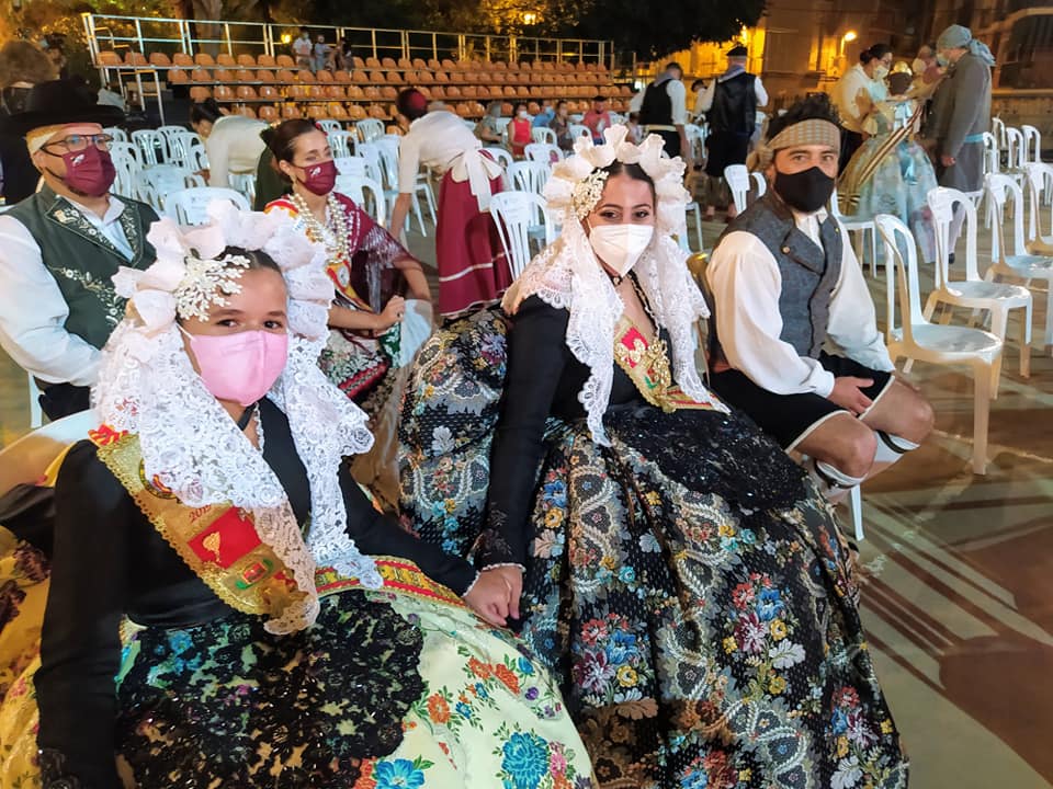 Nahia Tomás Pina y Eva Vicente Martinez, falleras mayores de Elda, acompañadas por Juan José Tebar y Adela Verdú, miembros de Junta Gestora de Fallas, asistieron en Jumilla al acto de ofrenda de uvas y primer mosto al Niño de las Uvas 2021, un tradicional y emotivo acto.