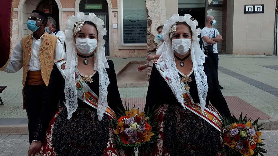 Hasta Sueca han ido las damas de la fallera mayor de Elda, Susi Tebar y Ainara Luzón, acompañadas por Sergio Fuster delegado de protocolo de Junta Gestora de fallas. Allí han participado en la ofrenda de flores en sus días grandes de las fallas 2021.