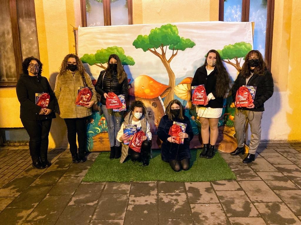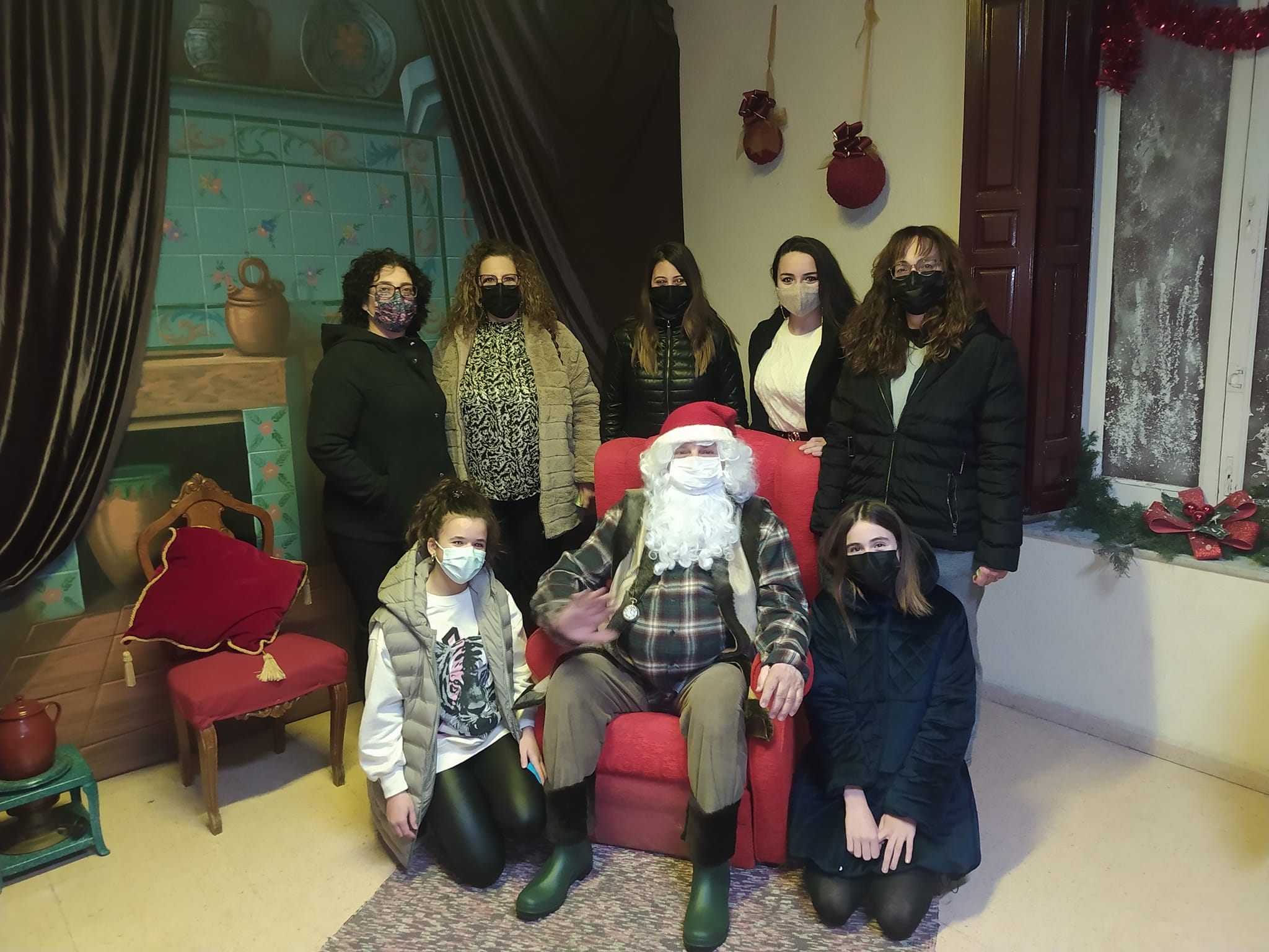Las falleras mayores de Elda y sus damas de honor, acompañadas por la presidenta de Junta Gestora han visitado la casa de Papá Noel.