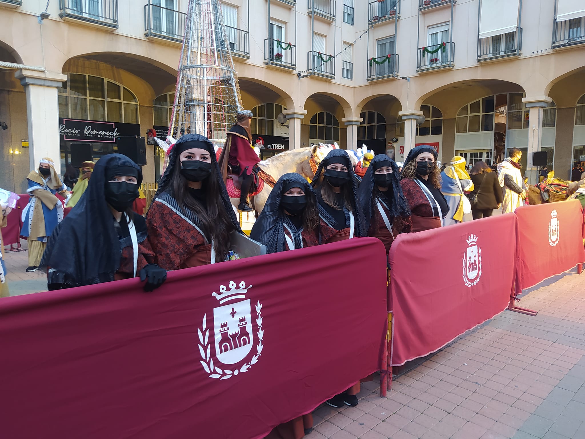 Las Falleras mayores de Elda y sus damas de honor, han tenido el privilegio de acompañar al Cartero Real, que ha llegado a la ciudad para recoger las cartas de los niños.