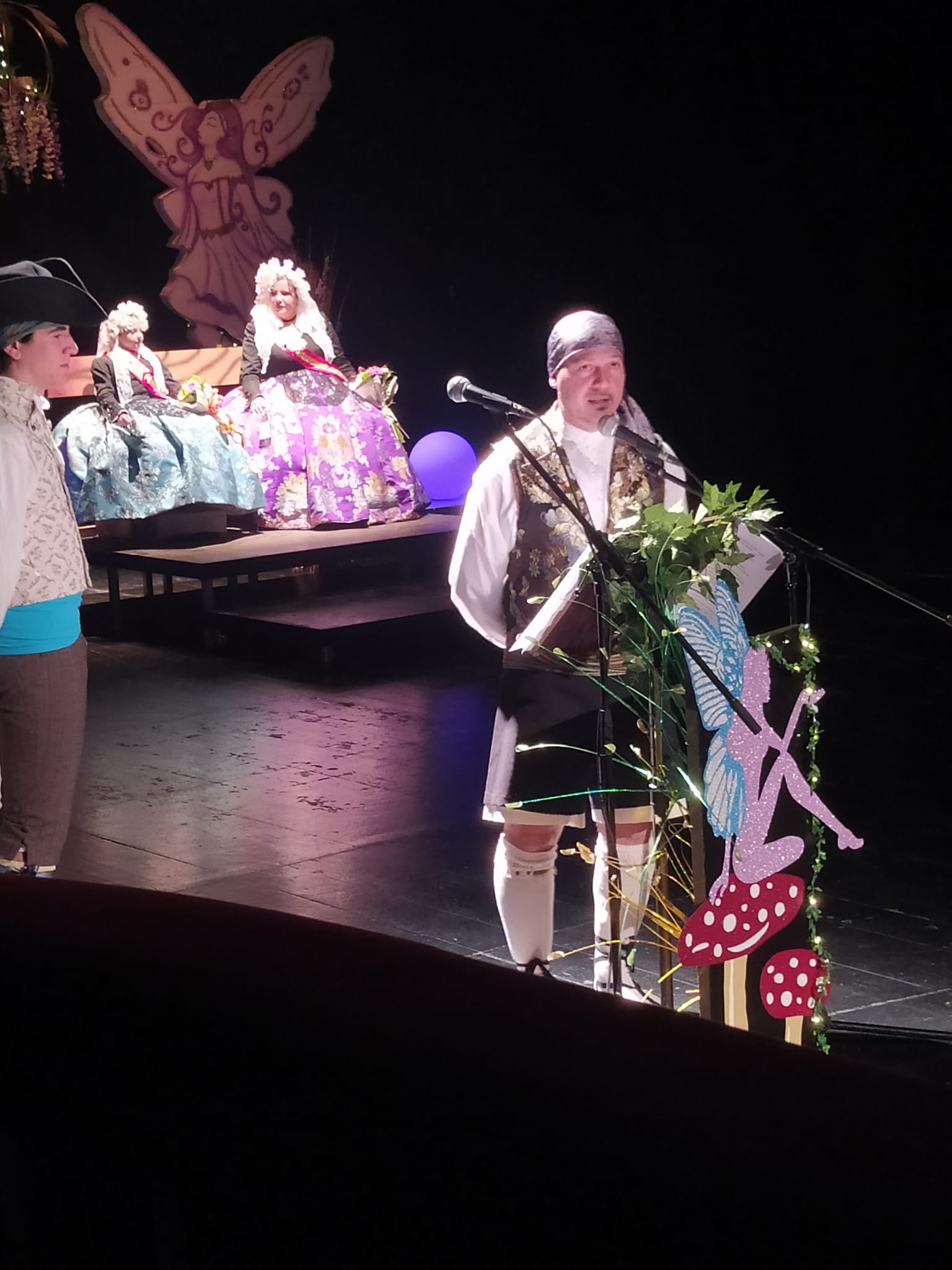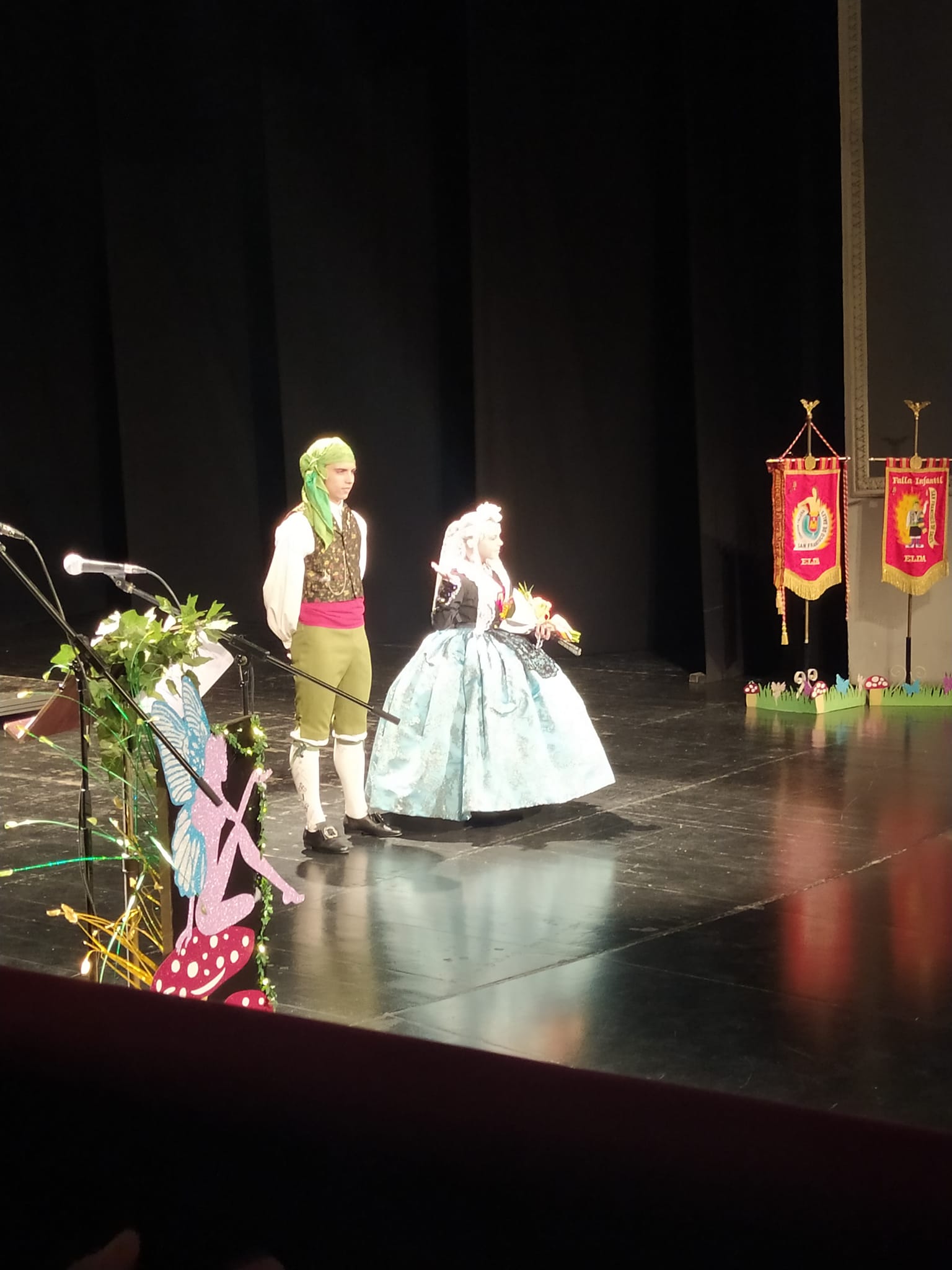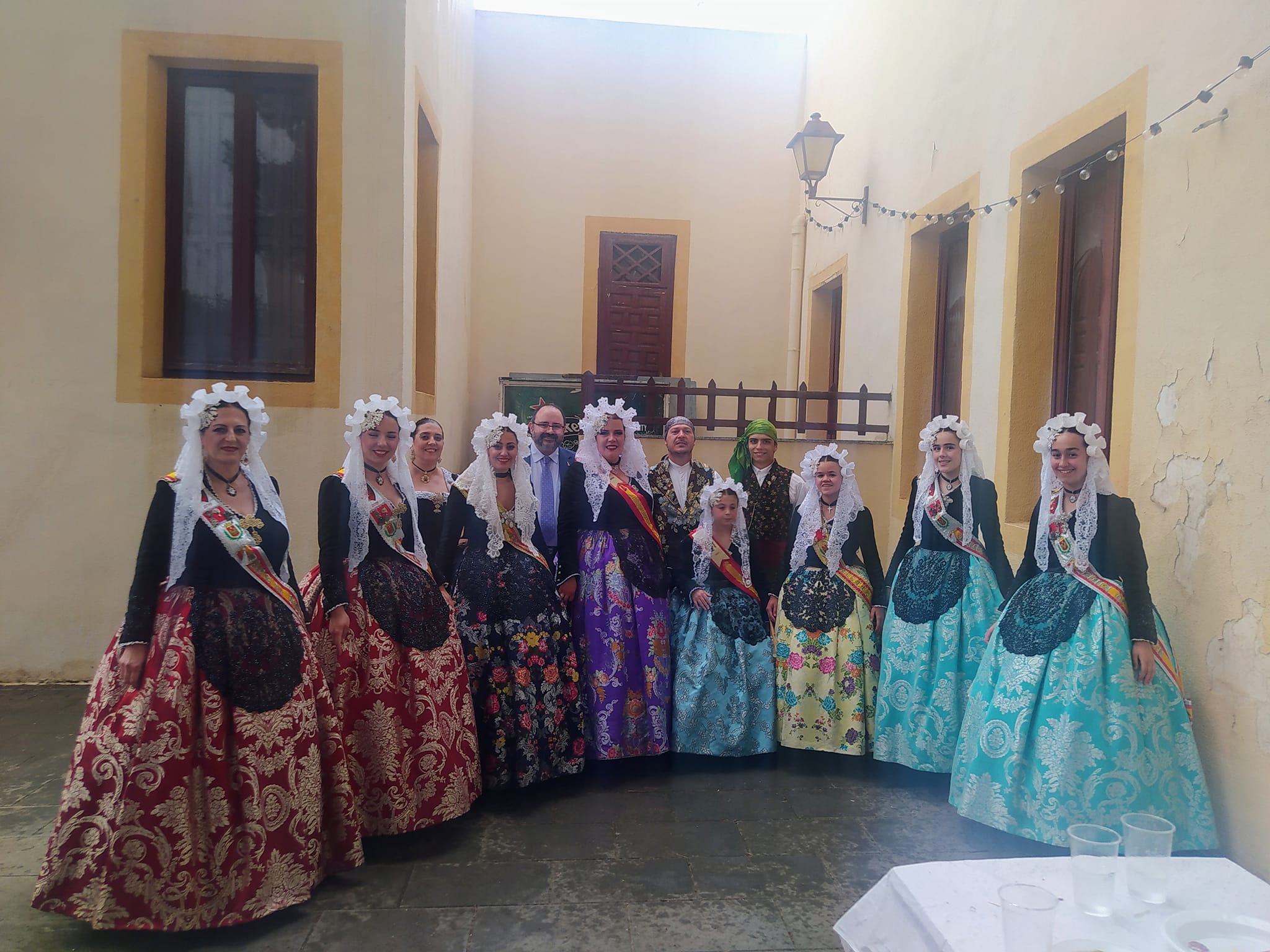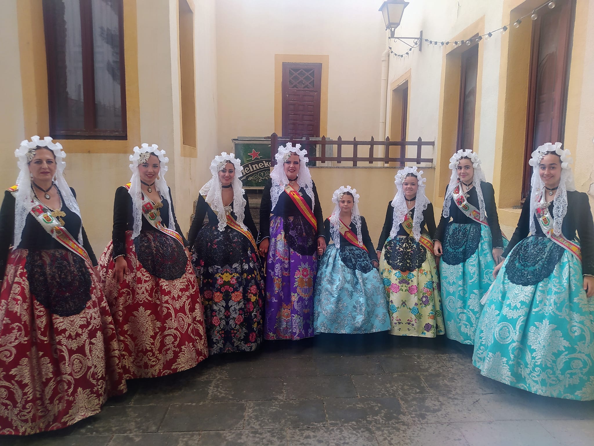 Las falleras mayores de Elda y sus damas de honor, asistieron en el Teatro Castelar a la presentación de cargos de la Falla San Francisco de Sales. Acto en el que fueron proclamadas Andrea Laín y Marisa Riquelme, falleras mayores 2022.