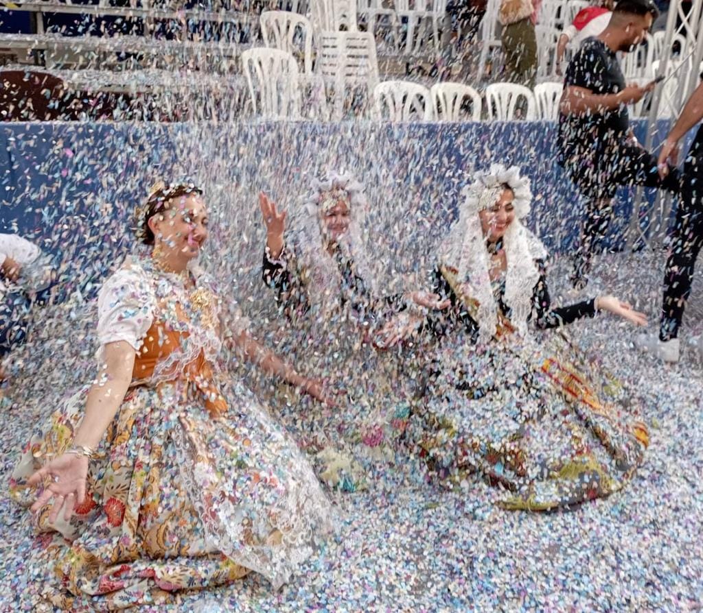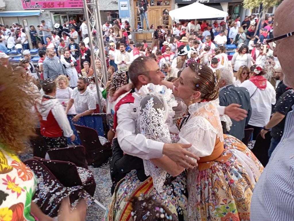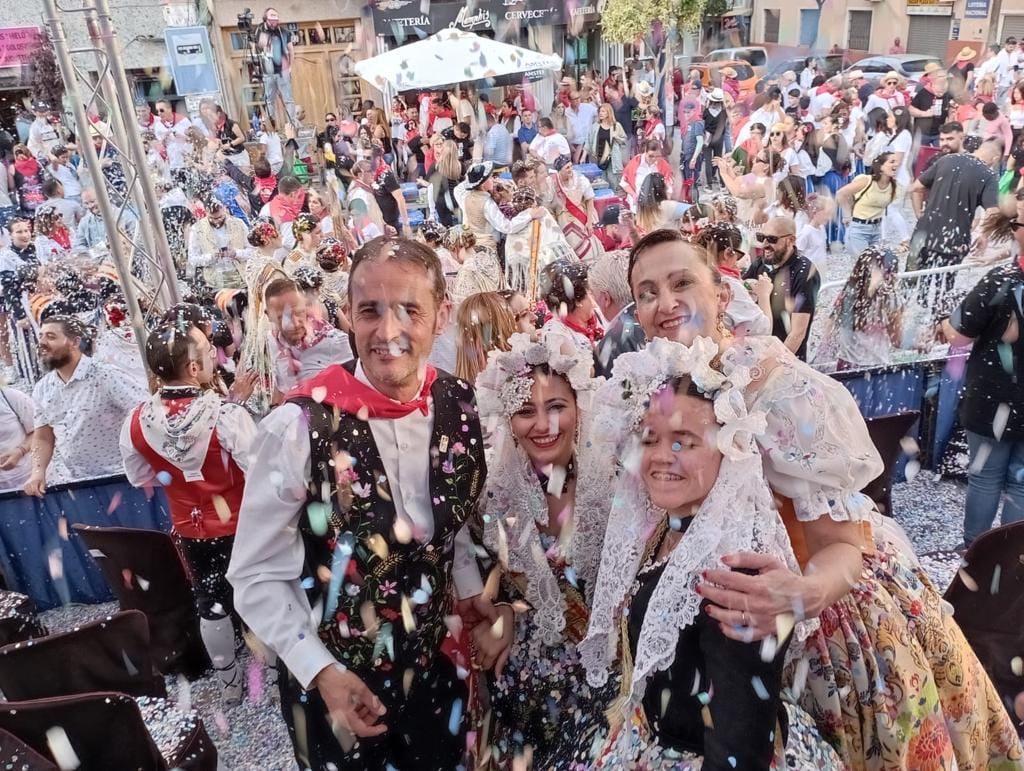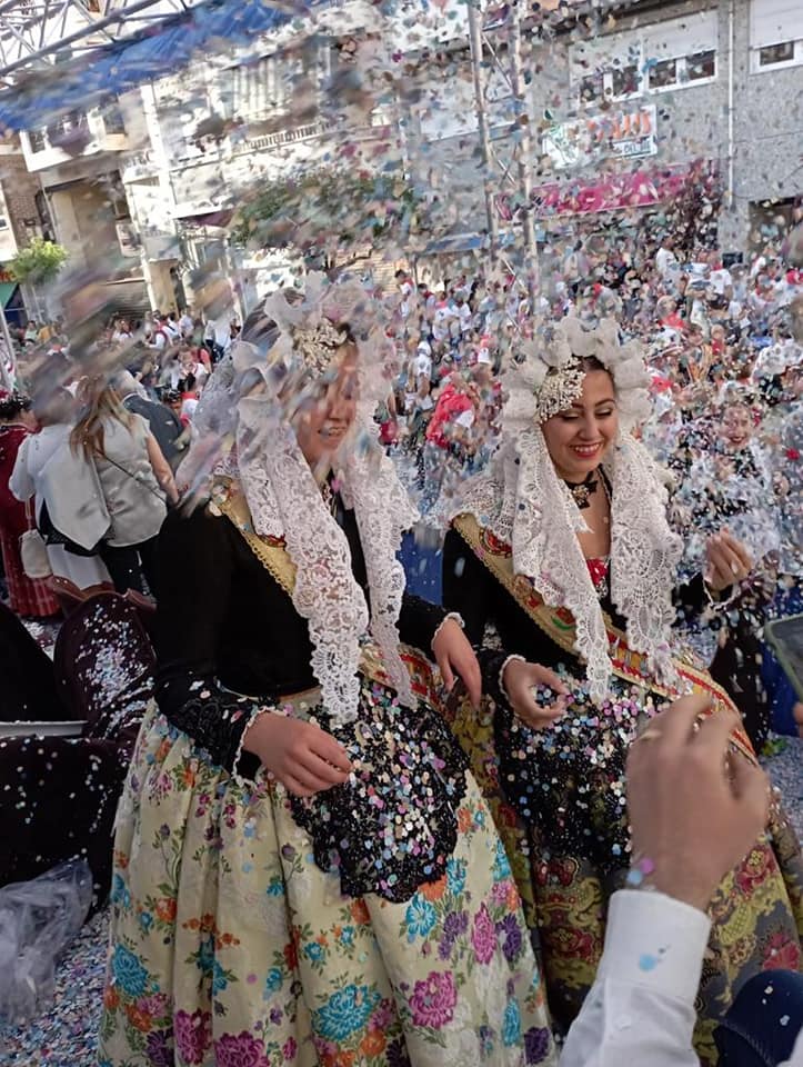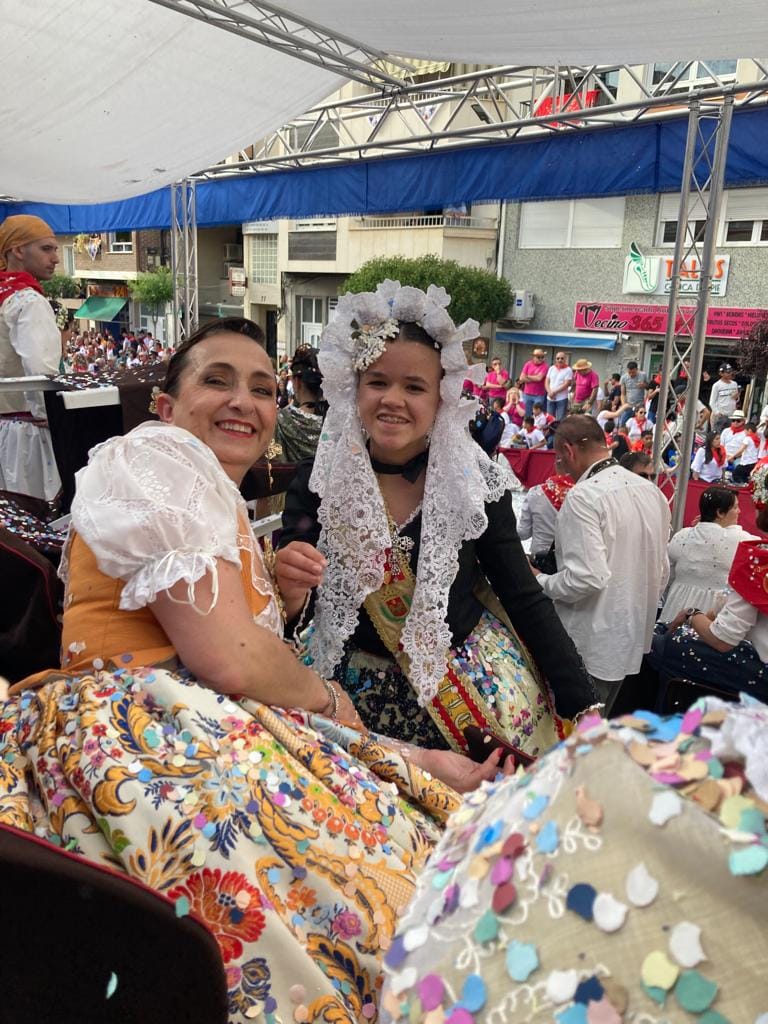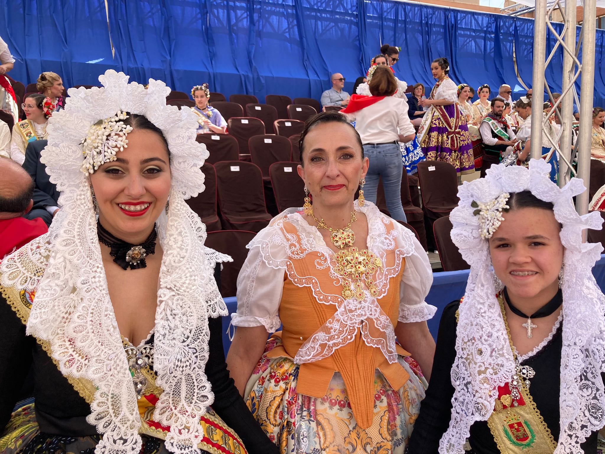 Eva y Nahia, falleras mayores de Elda, e Isabel presidenta de Junta Gestora de fallas, se desplazaron a Yecla, a las fiestas de San Isidro, para participar en el desfile de carrozas 2022.
