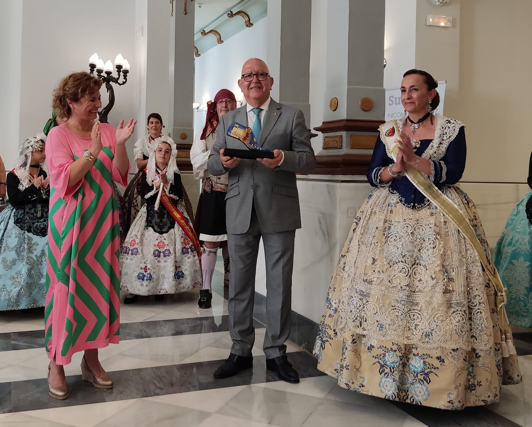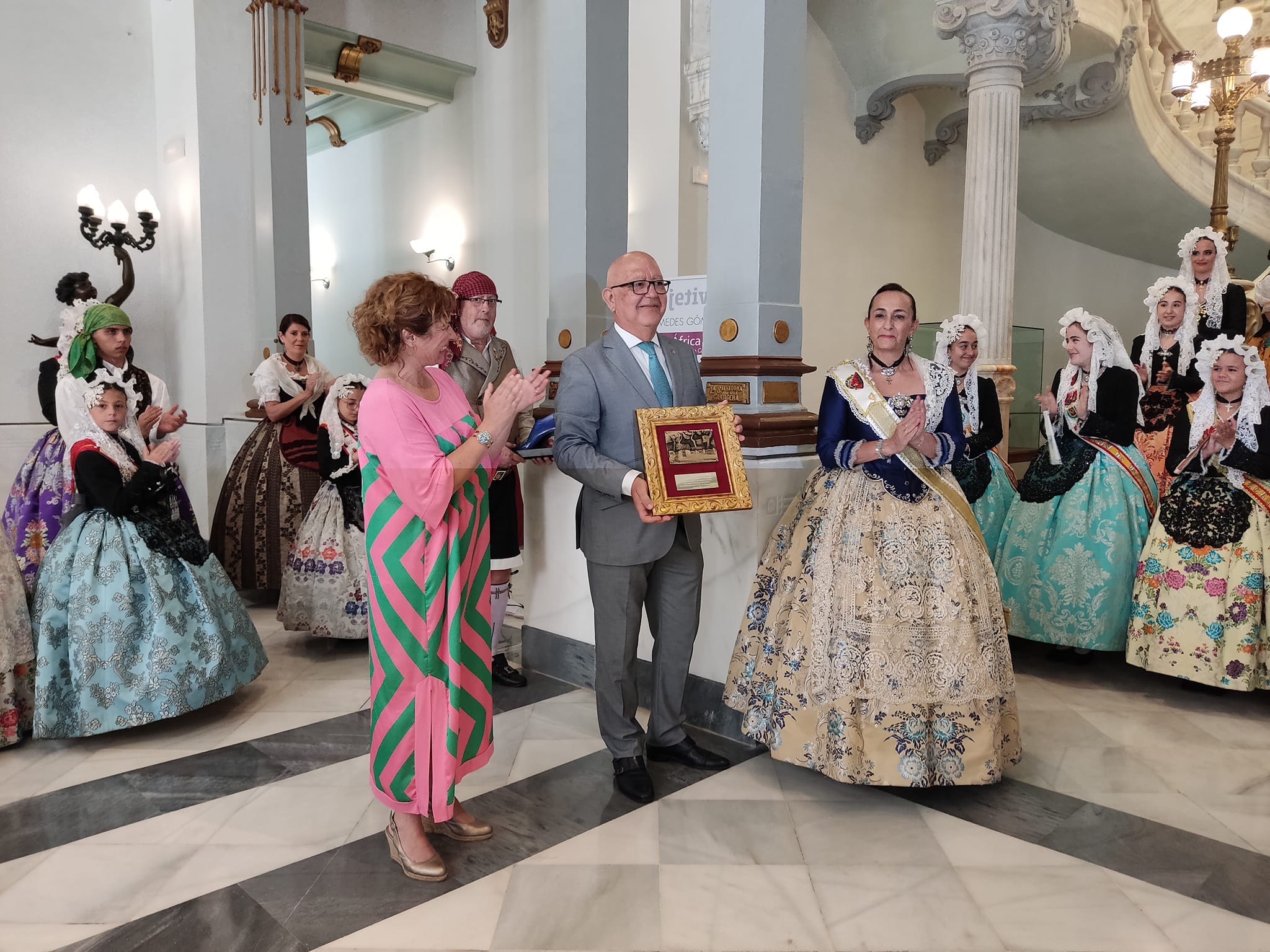 Las fallas de Elda son recibidas en el ayuntamiento de esta ciudad por el teniente alcalde y concejal de fiestas, donde nos ha estado acompañando en todo momento en la visita a la ciudad. La concejala de turismo del ayuntamiento de Elda Rosa Vidal ha entregado un obsequio al teniente alcalde, igual que la presidenta de Junta Gestora en nombre de nuestra fiesta.